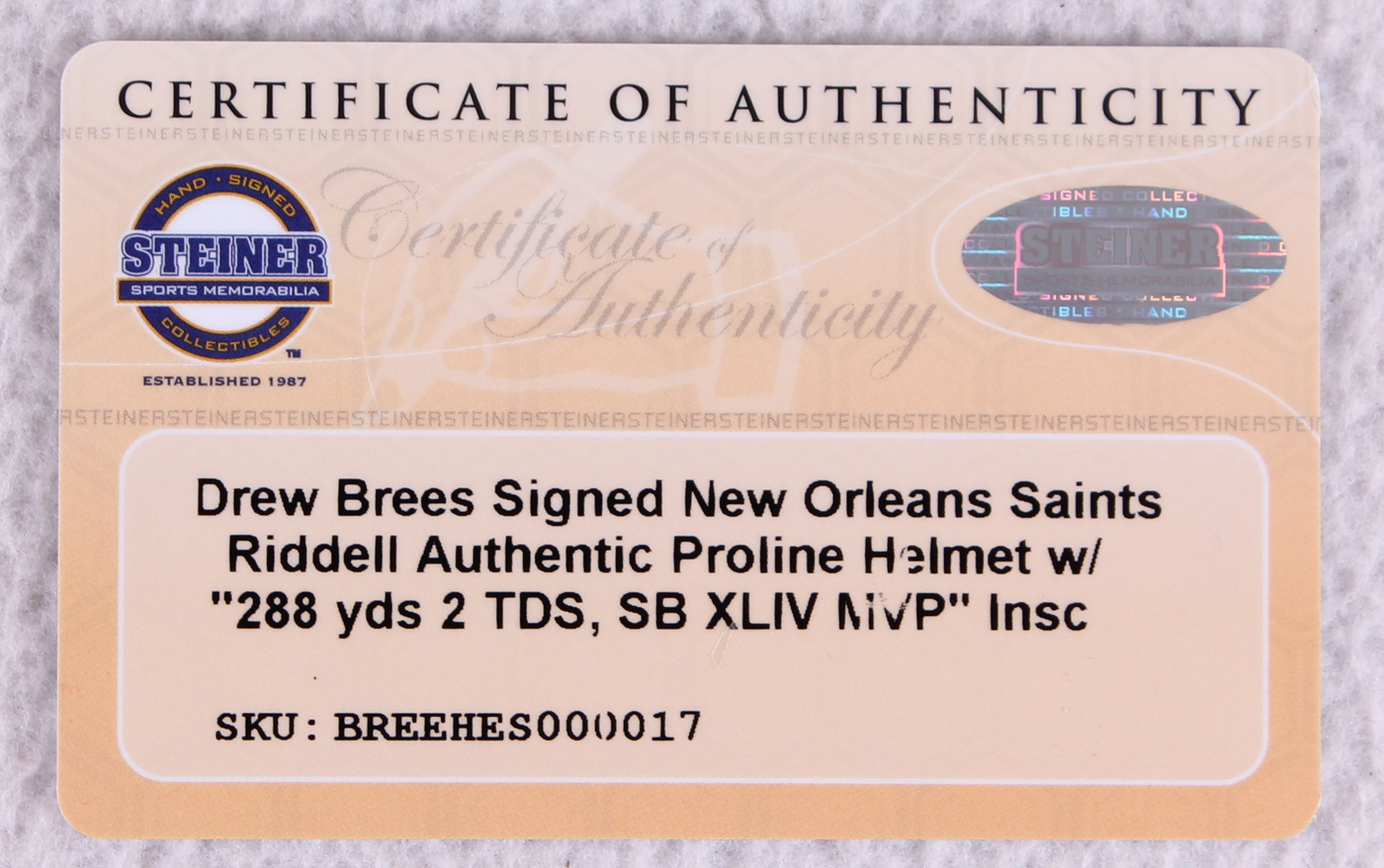 Authentication: Steiner COA & Brees Hologram