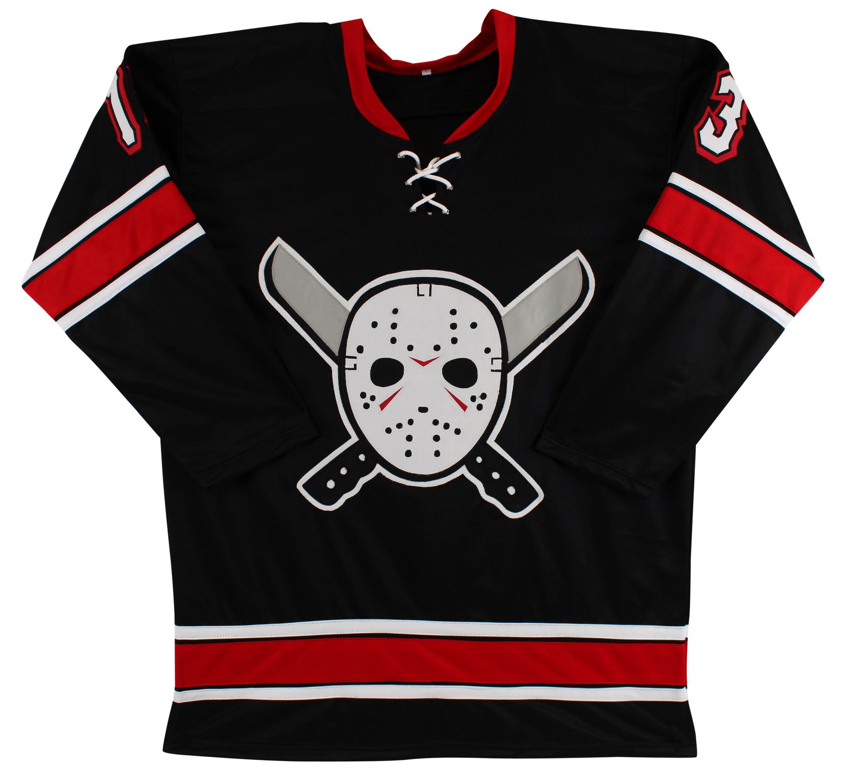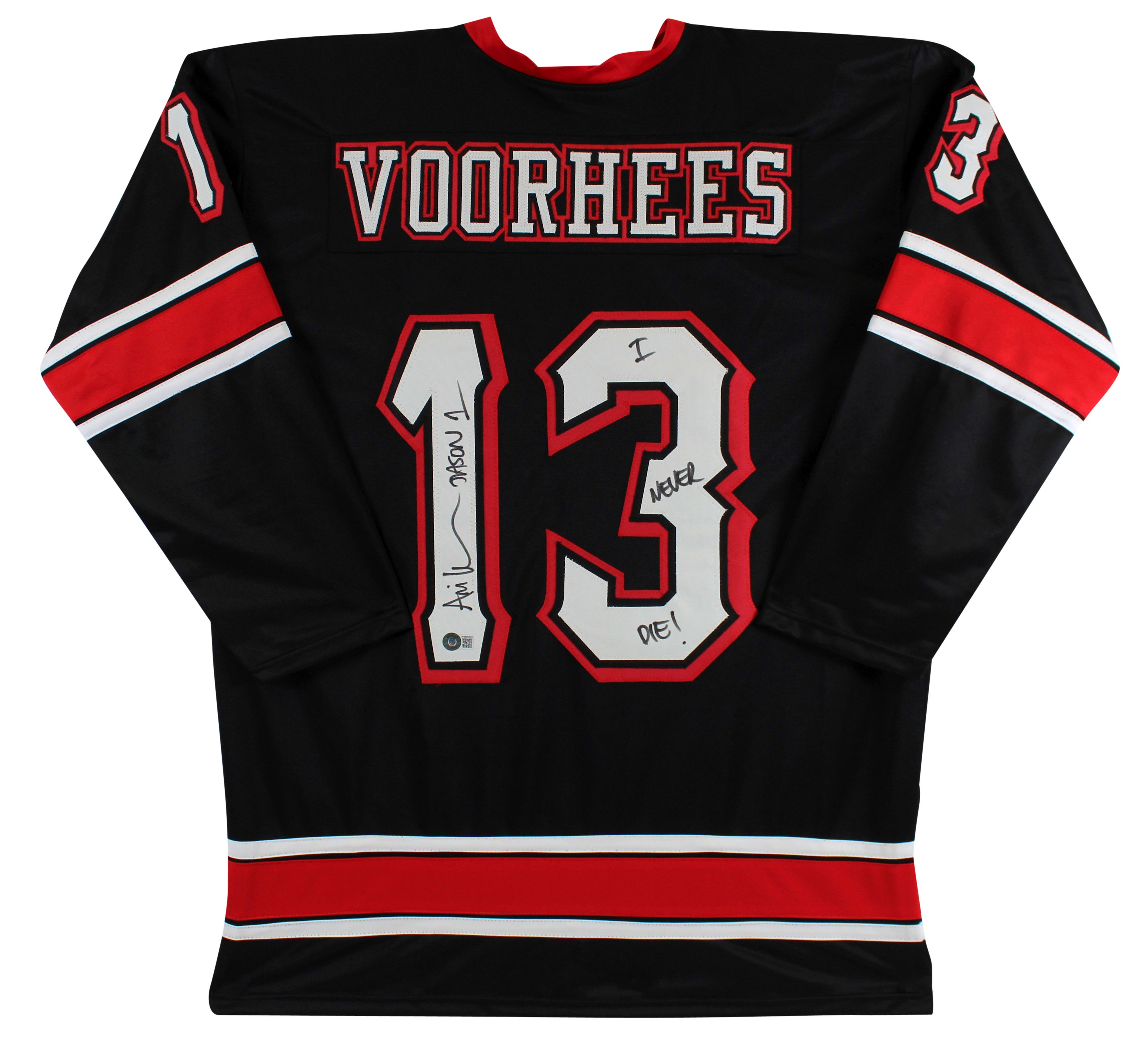 Custom jersey. Everything is sewn on, size XL. Hand-signed and inscribed by Ari Lehman (Jason Voorhees).