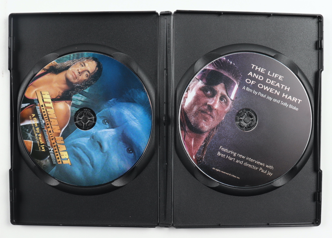 DVD case has been hand-signed on the front cover by Bret Hart (HOF). Includes (2) original DVDs.