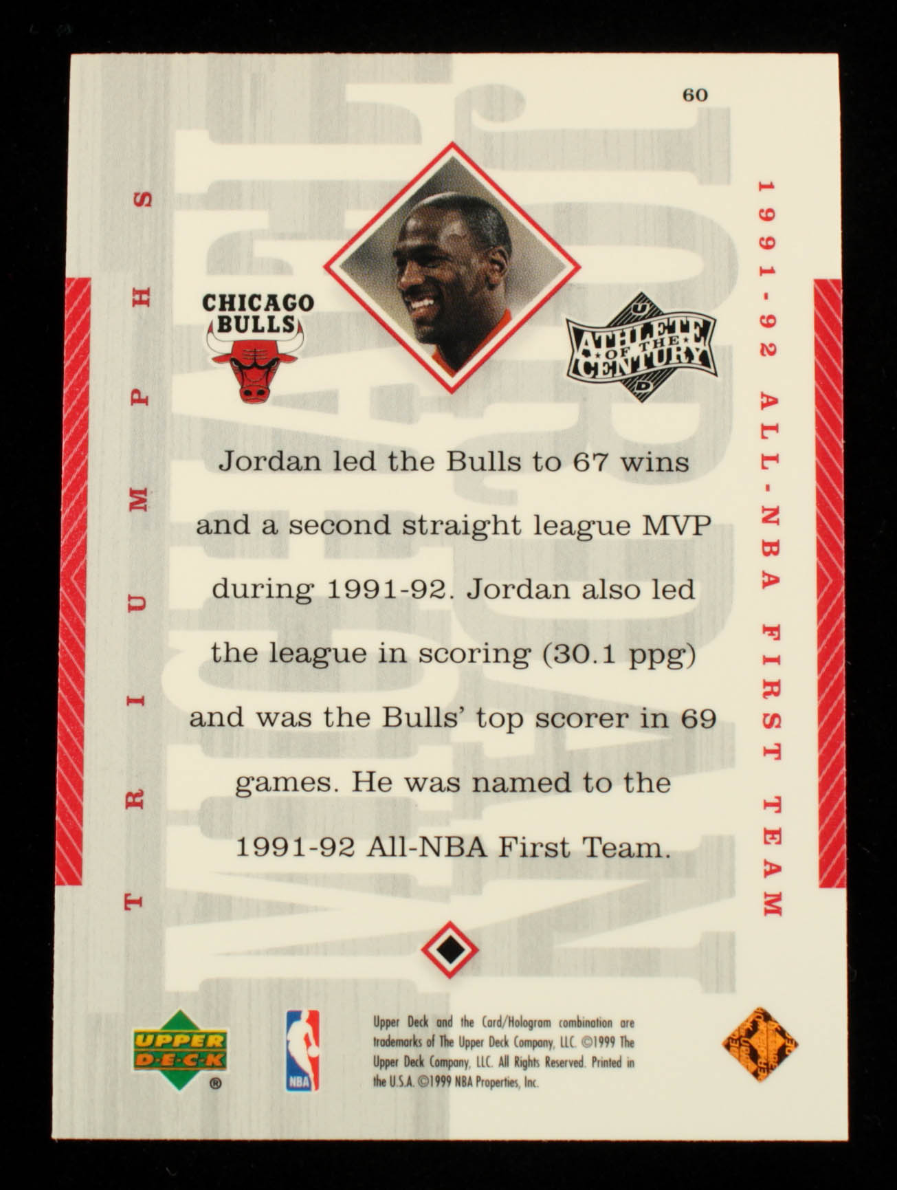 Michael Jordan 1999 Upper Deck Michael Jordan Athlete of the Century #60 / 91-92 All-NBA First Team