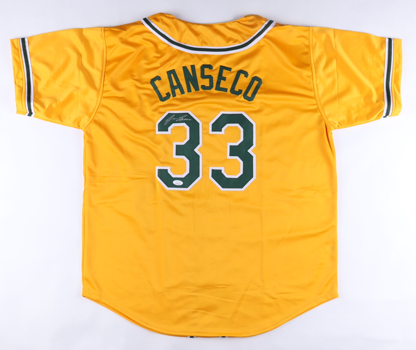Custom on-field style jersey. Everything is sewn on, size XL. Hand-signed by Jose Canseco.