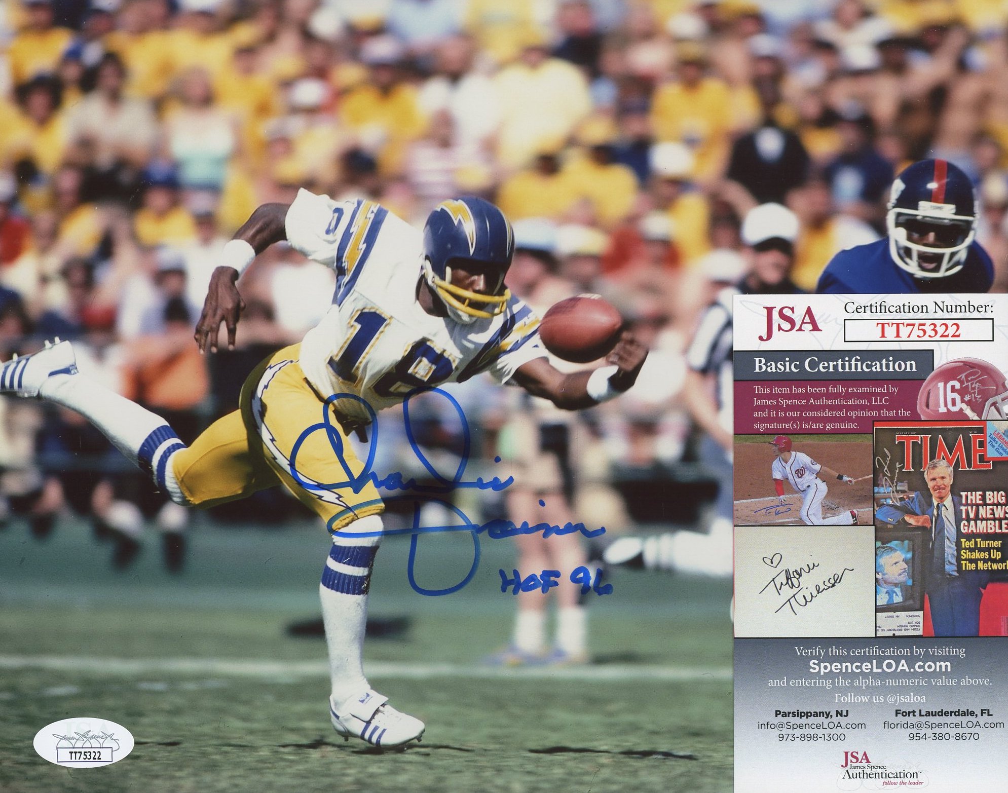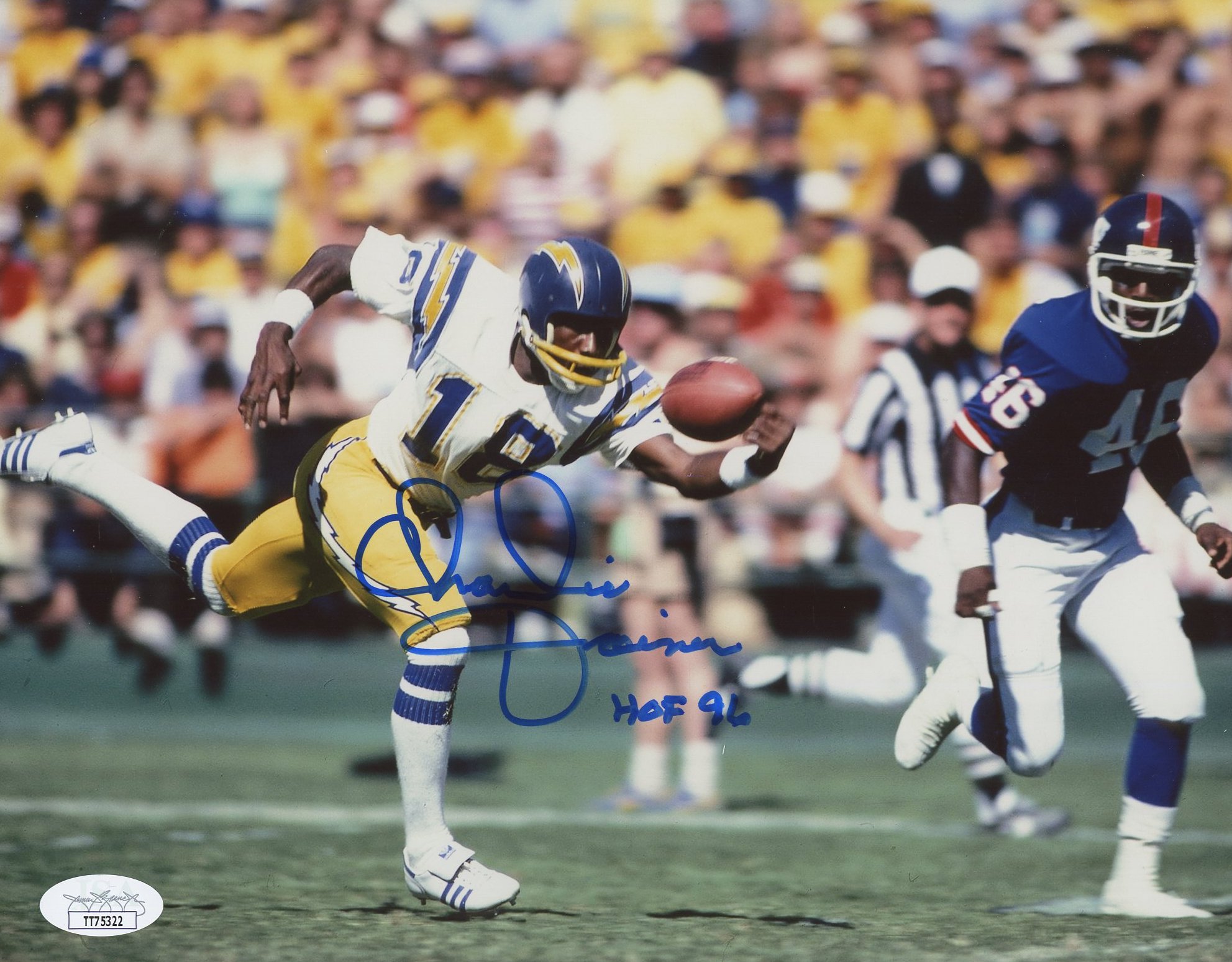 Charlie Joiner Signed Chargers 8x10 Photo Inscribed "HOF 96" (JSA COA)