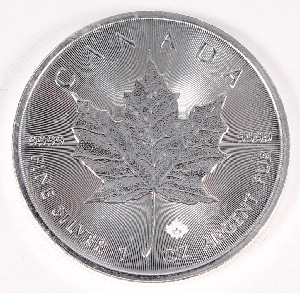 The 2015 Canadian Silver Maple Leaf coin contains the same security features and overall design as the 2014 coins. These unique features include a privy mark on the reverse and radial lines which make counterfeiting the coins nearly impossible. Like all previous coins, the 2015 Canadian Silver Maple Leaf is minted in 1 troy ounce of .9999 fine silver.