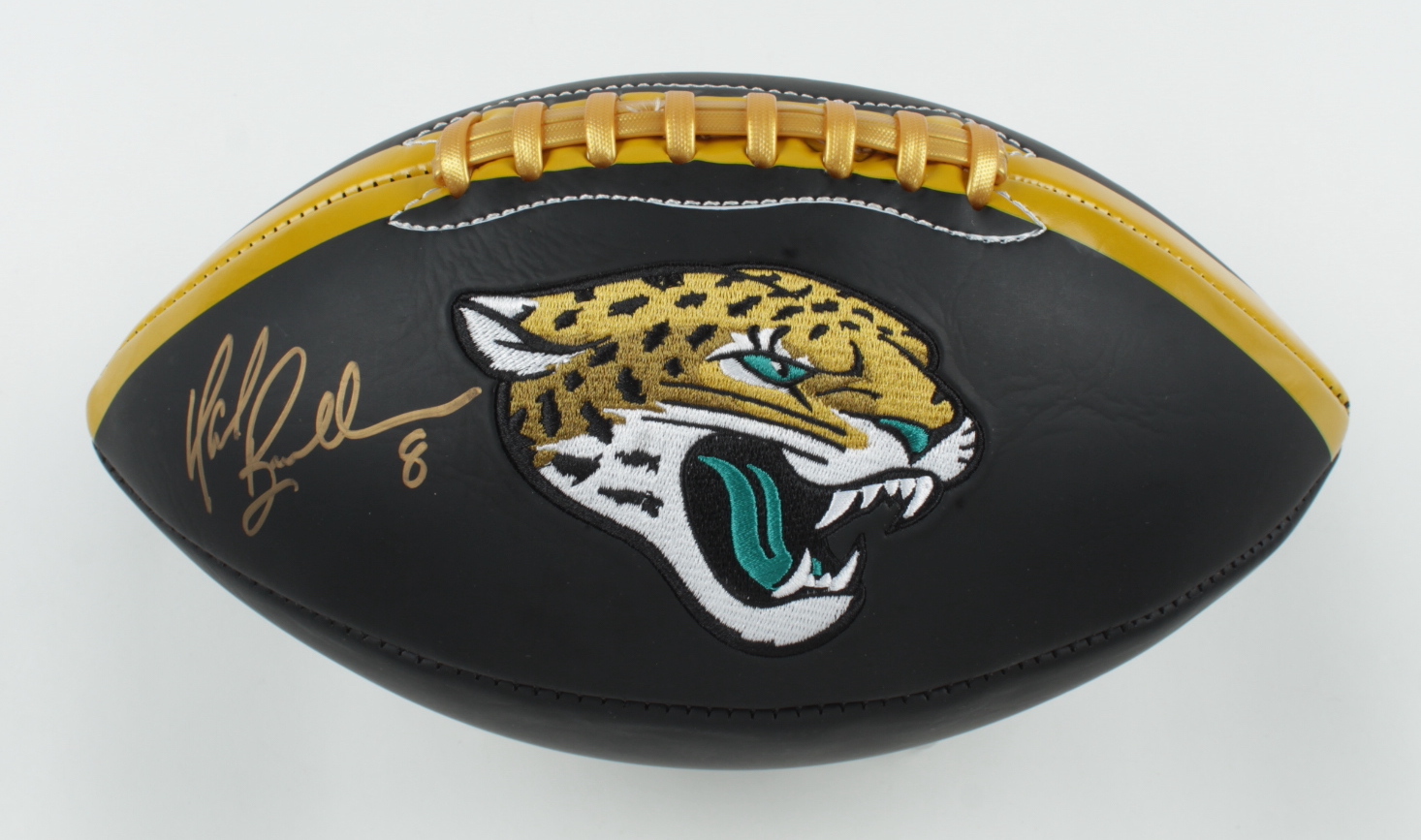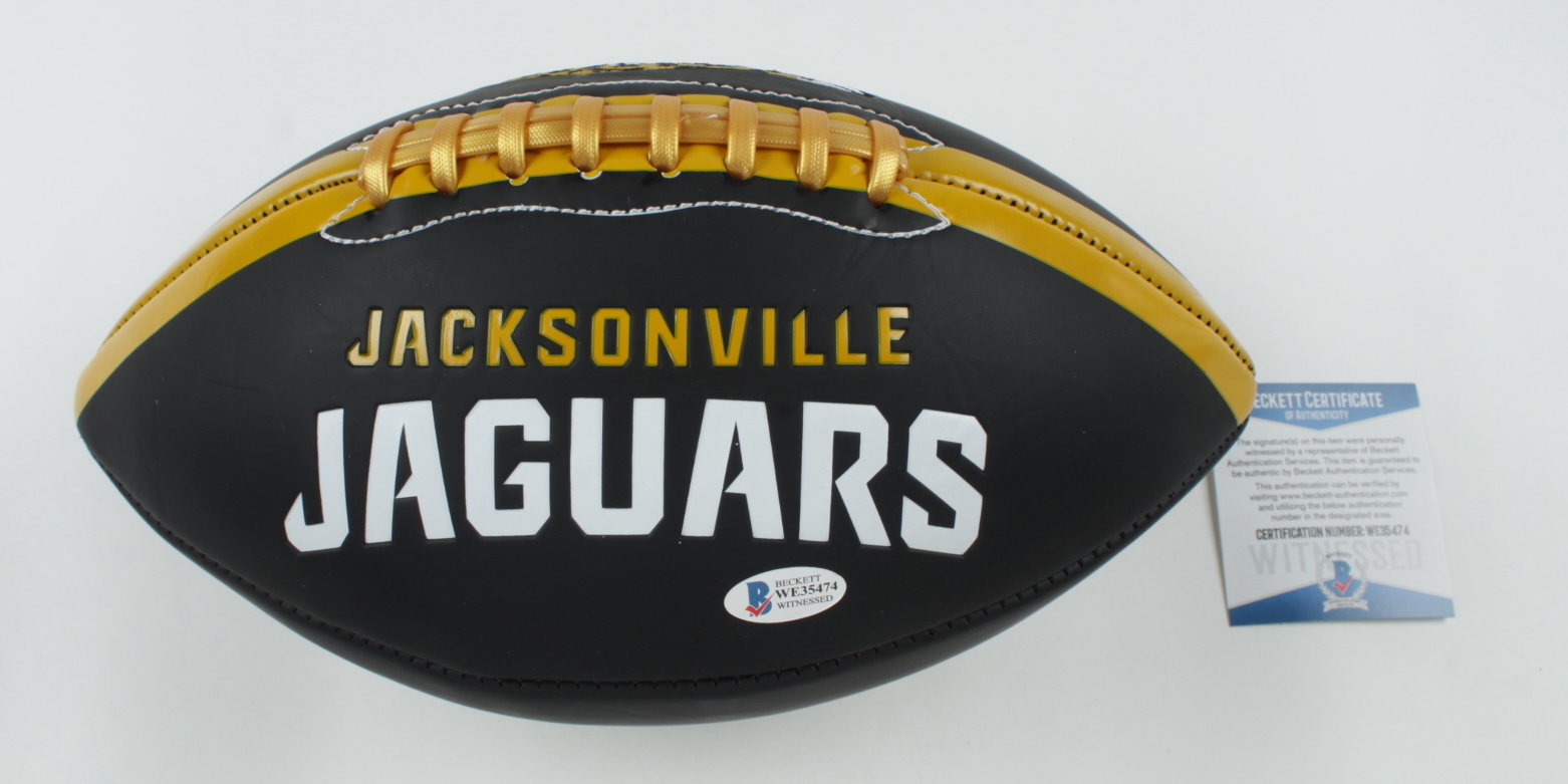 Jacksonville Jaguars logo football has been hand-signed by Mark Brunell.