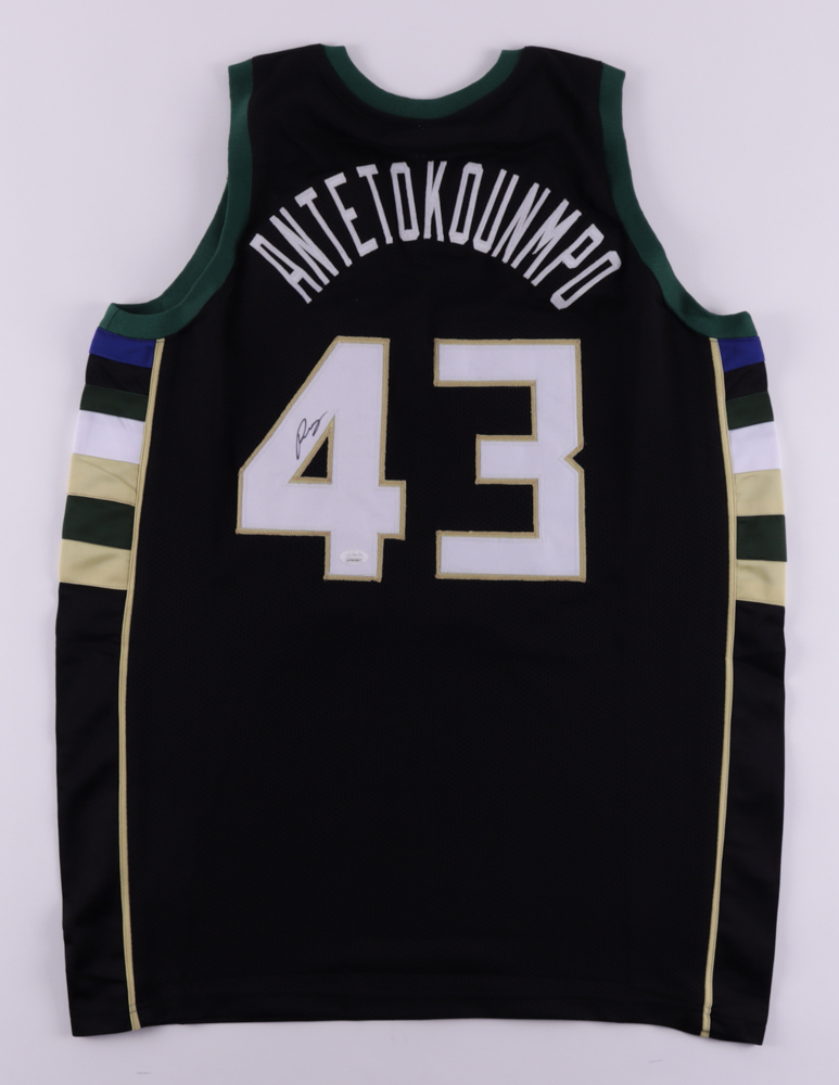 Custom on-court style jersey. Everything is sewn on, size XL. Hand-signed by Thanasis Antetokounmpo.
