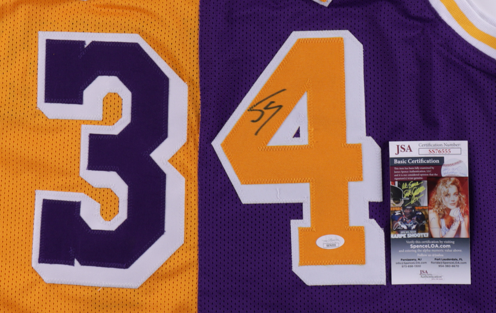 Custom on-court style jersey. Everything is sewn on, size XL. Hand-signed by Shaquille O'Neal (HOF).