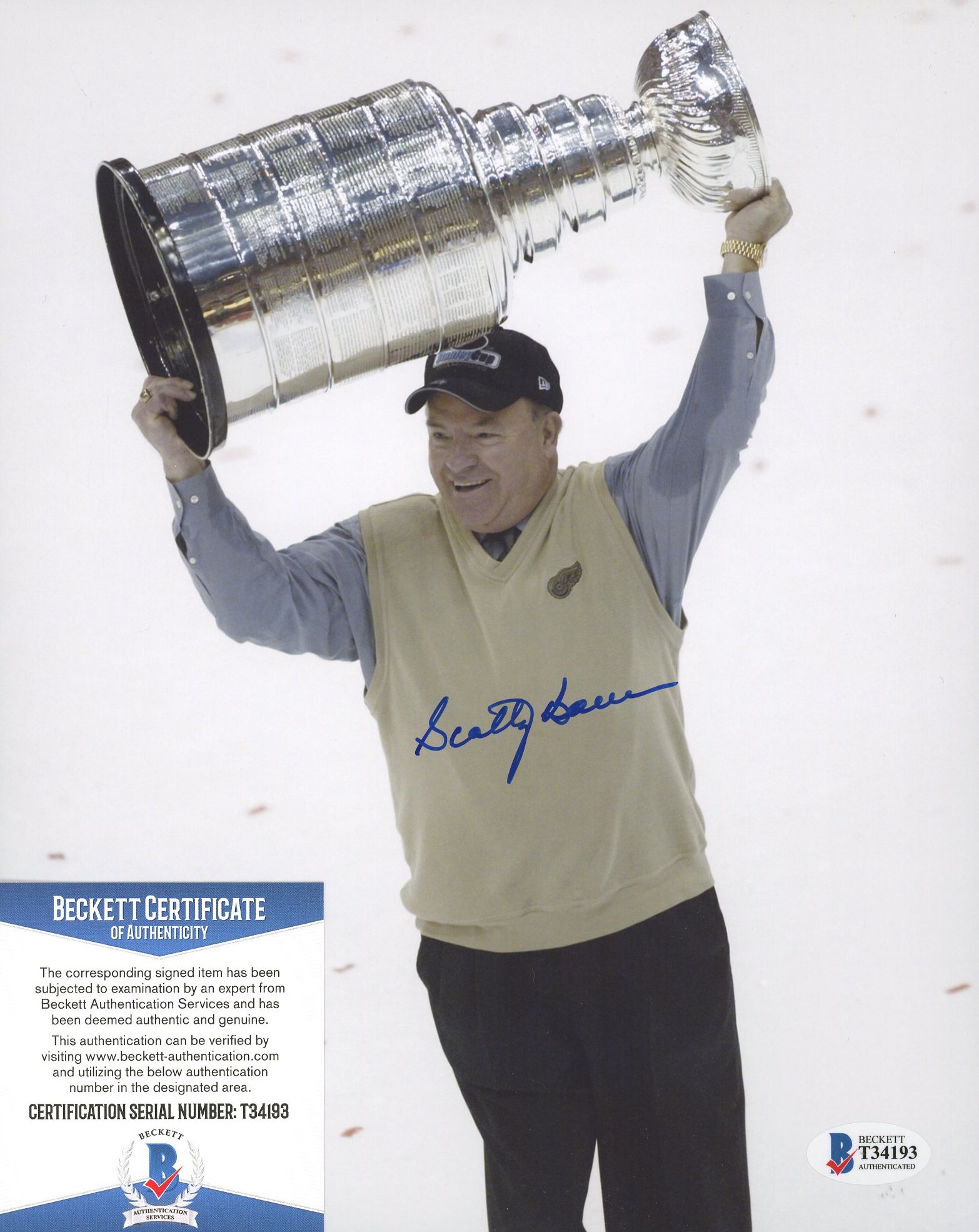 Photo measures 8" x 10" in size and has been hand-signed by Scotty Bowman (Detroit Red Wings, HOF).