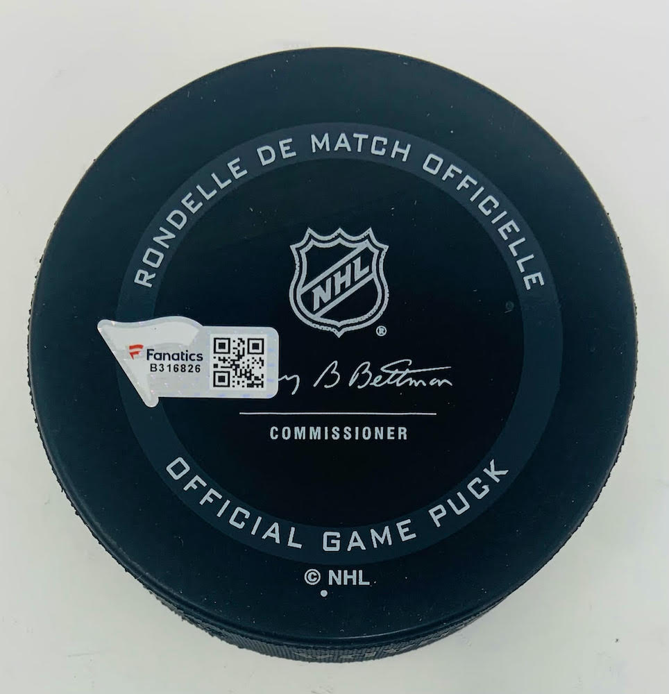Seattle Kraken inaugural season logo hockey puck. Hand-signed and inscribed by Jordan Eberle.