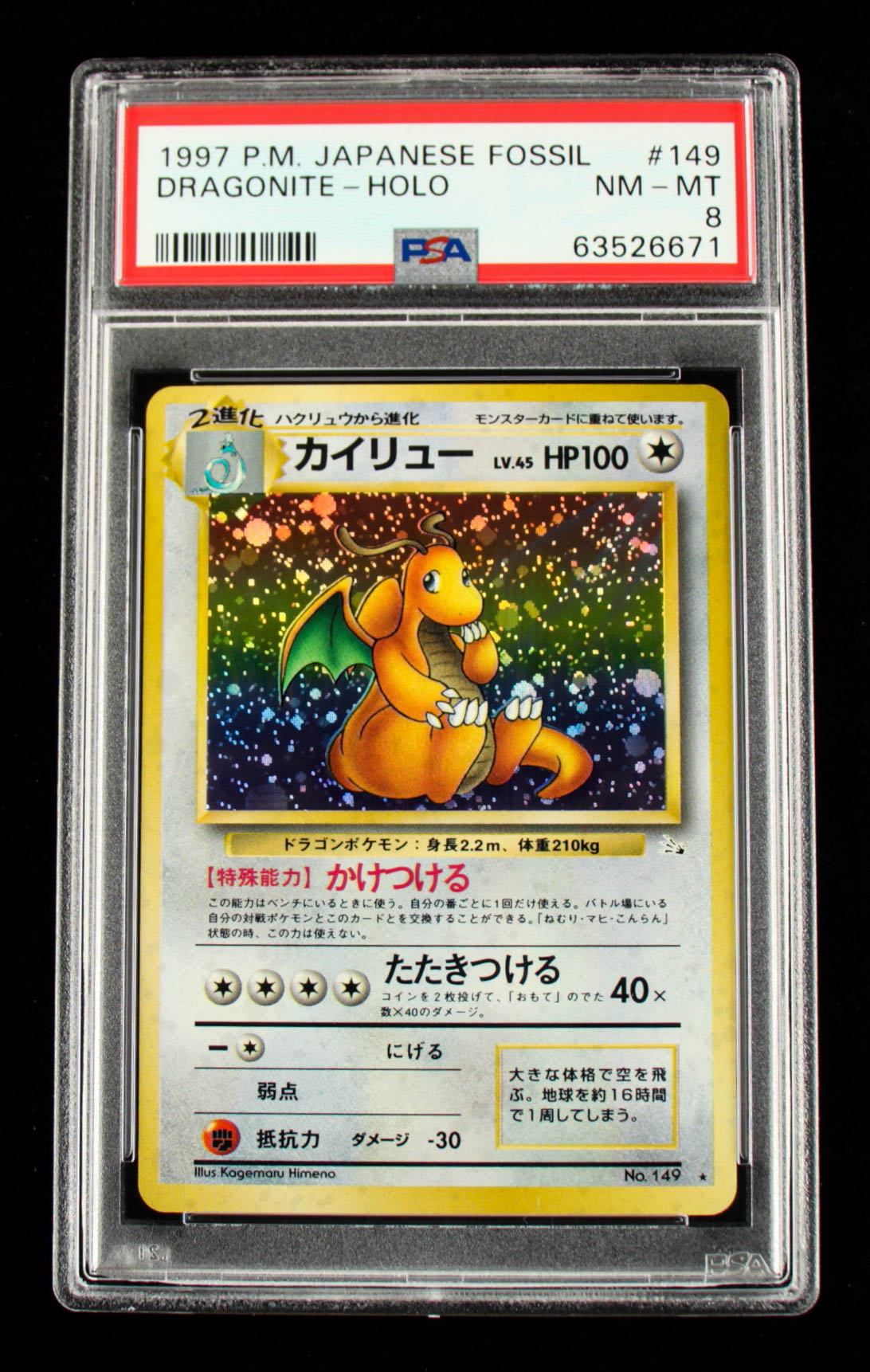 Dragonite 1997 Pokemon The Mystery of the Fossils Japanese #149 Holo (PSA 8)