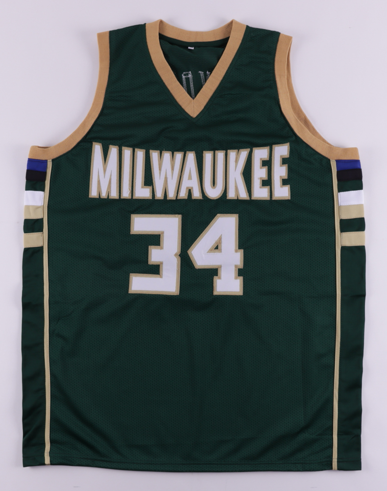 Custom on-court style jersey. Everything is sewn on, size XL. Hand-signed by Giannis Antetokounmpo.