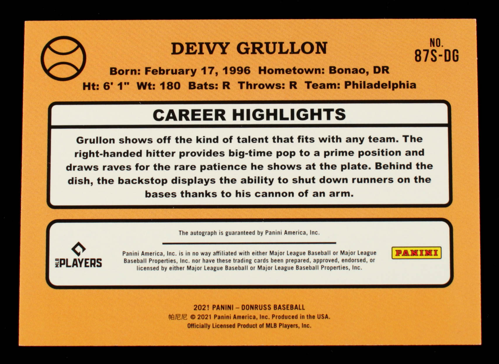 Deivy Grullon 2021 Donruss Retro '87 Signatures #82