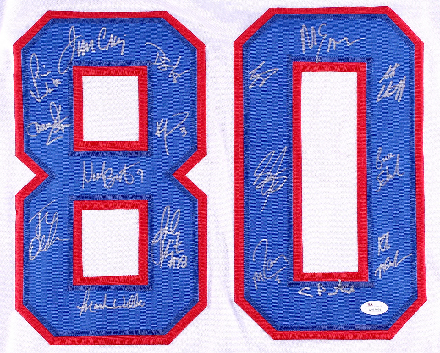 1980 Team USA Hockey "Miracle on Ice" Jersey Signed by (17) with Mike Eruzione, Jim Craig, Ken Morrow, Jack O'Callahan, Rob McClanahan, Dave Silk, Buzz Schneider, Mark Wells, Neal Broten (JSA COA)