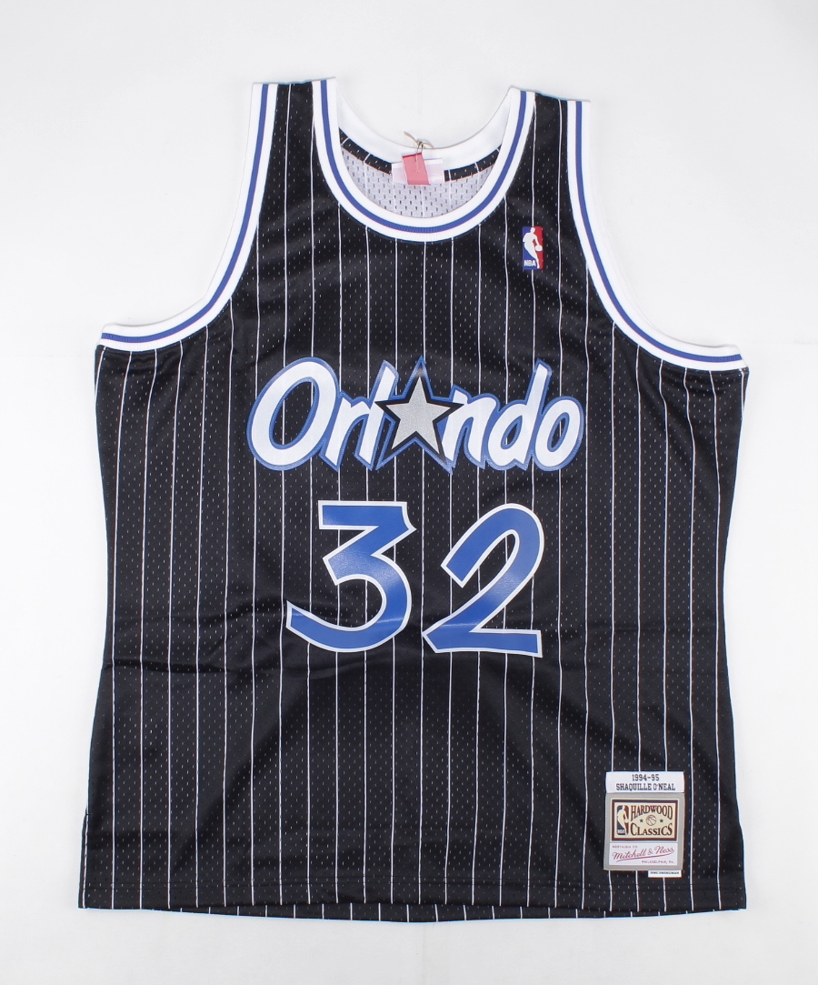 Mitchell & Ness on-court style jersey. Everything printed on, size XL. Hand-signed by Shaquille O'Neal (Orlando Magic, HOF).