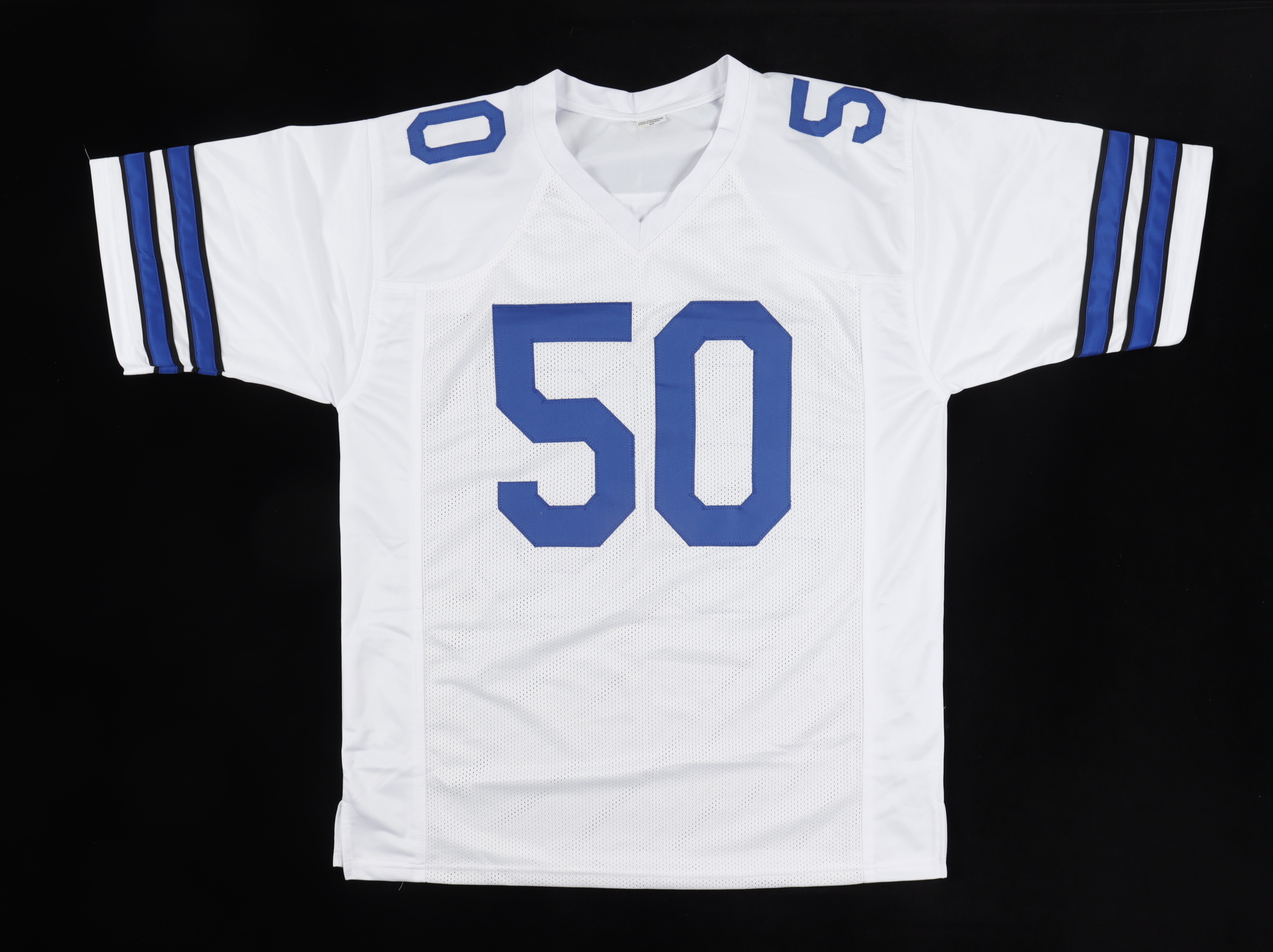 Custom on-field style jersey. Everything is sewn on, size XL. Hand-signed and inscribed by D. D. Lewis.