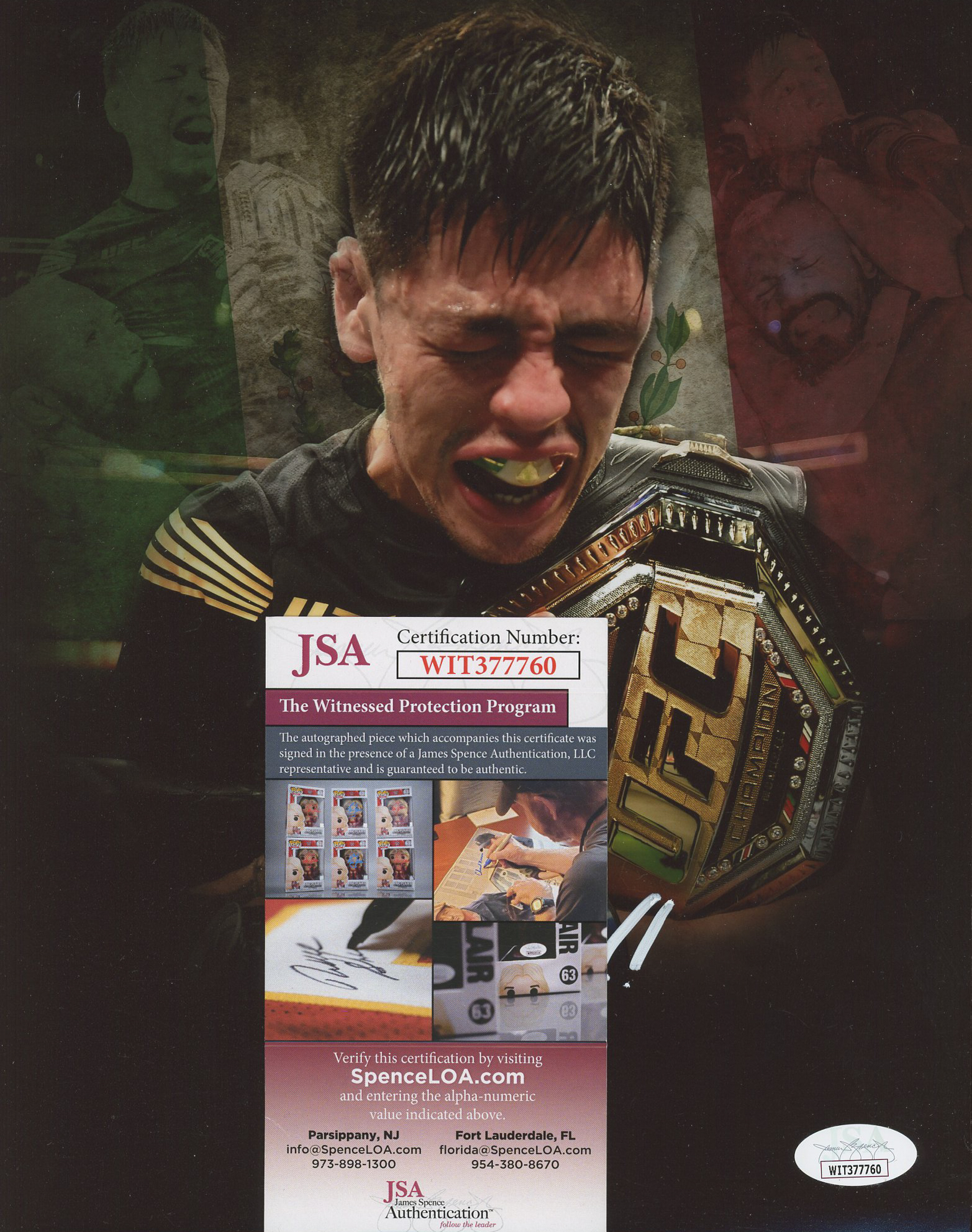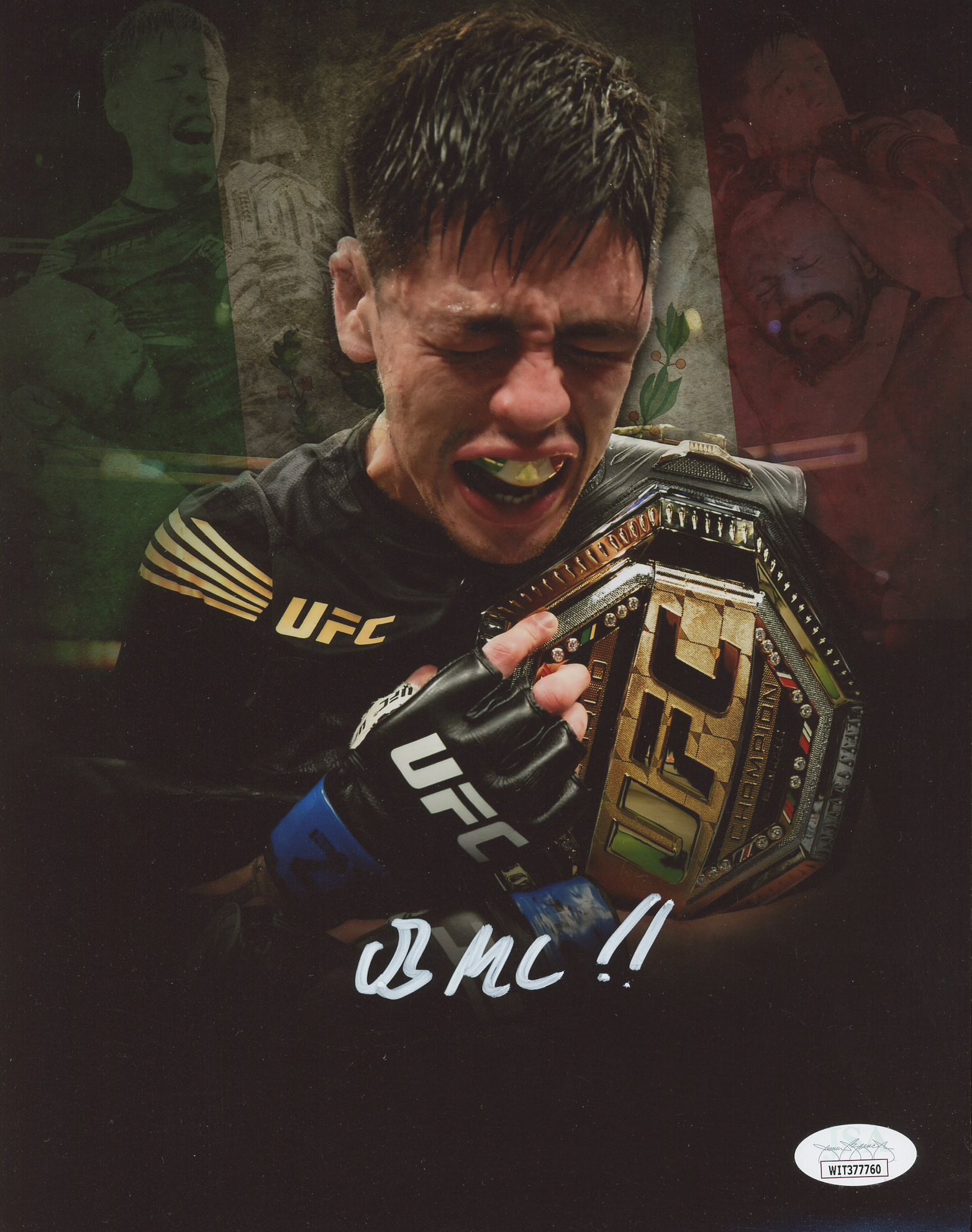 Photo measures 8" x 10" in size and has been hand-signed by Brandon Moreno.
