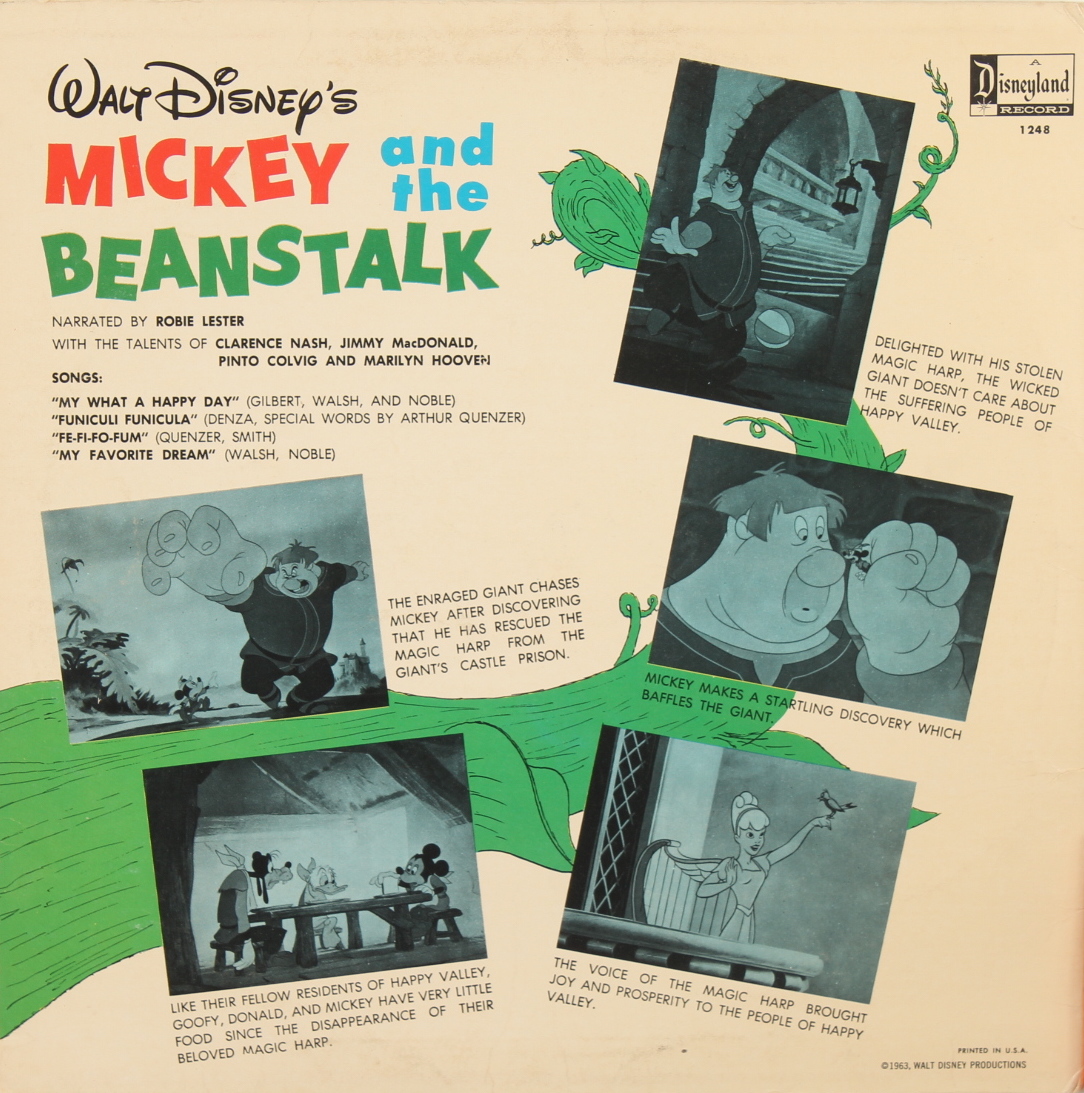 Vintage 1963 Walt Disney's "Mickey and the Beanstalk: The Complete Story and all the Songs with the Original Cast" Soundtrack Vinyl LP Record Album (See Description)