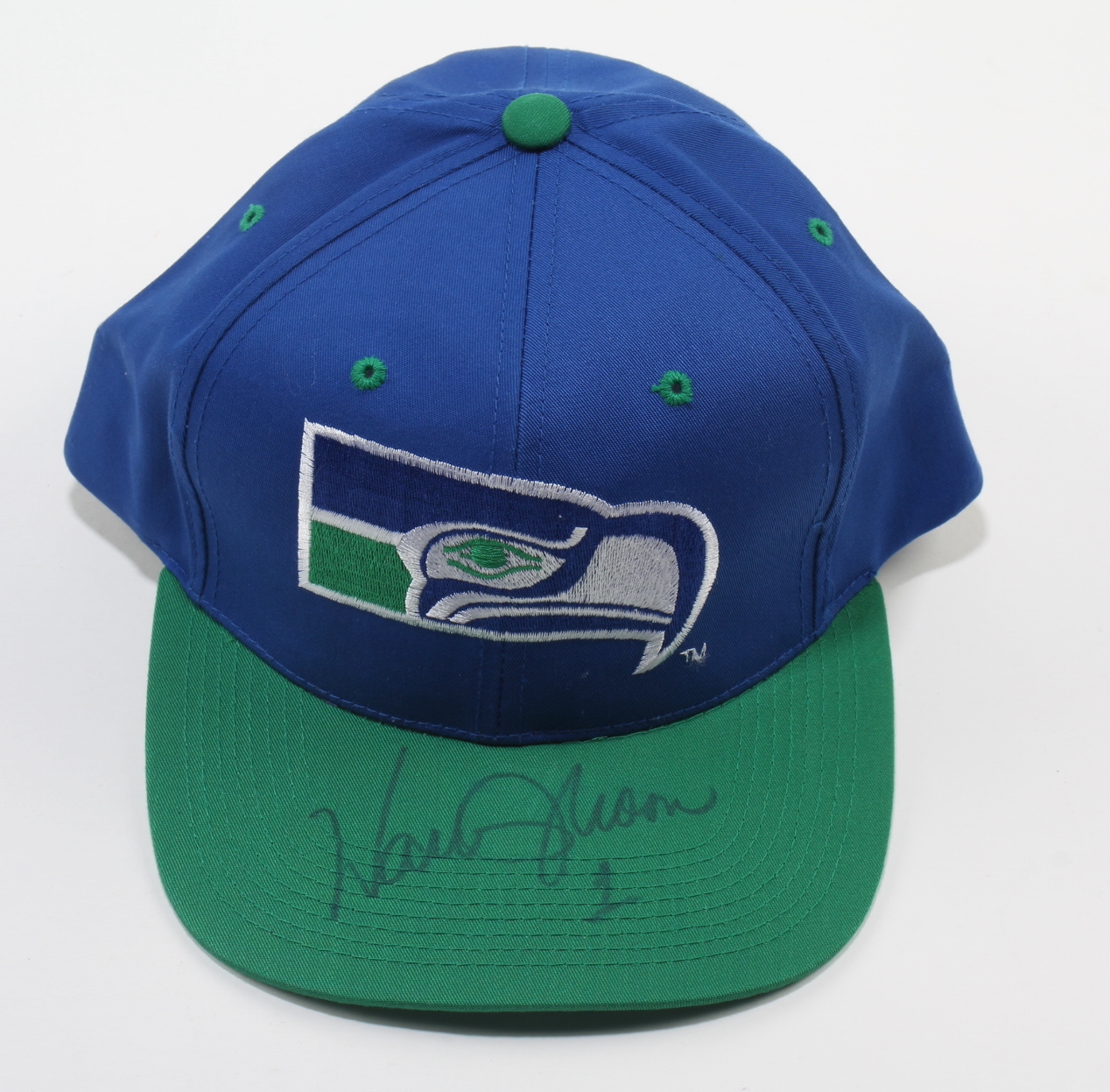 Seattle Seahawks snap back adjustable hat has been hand signed by Warren Moon (HOF).