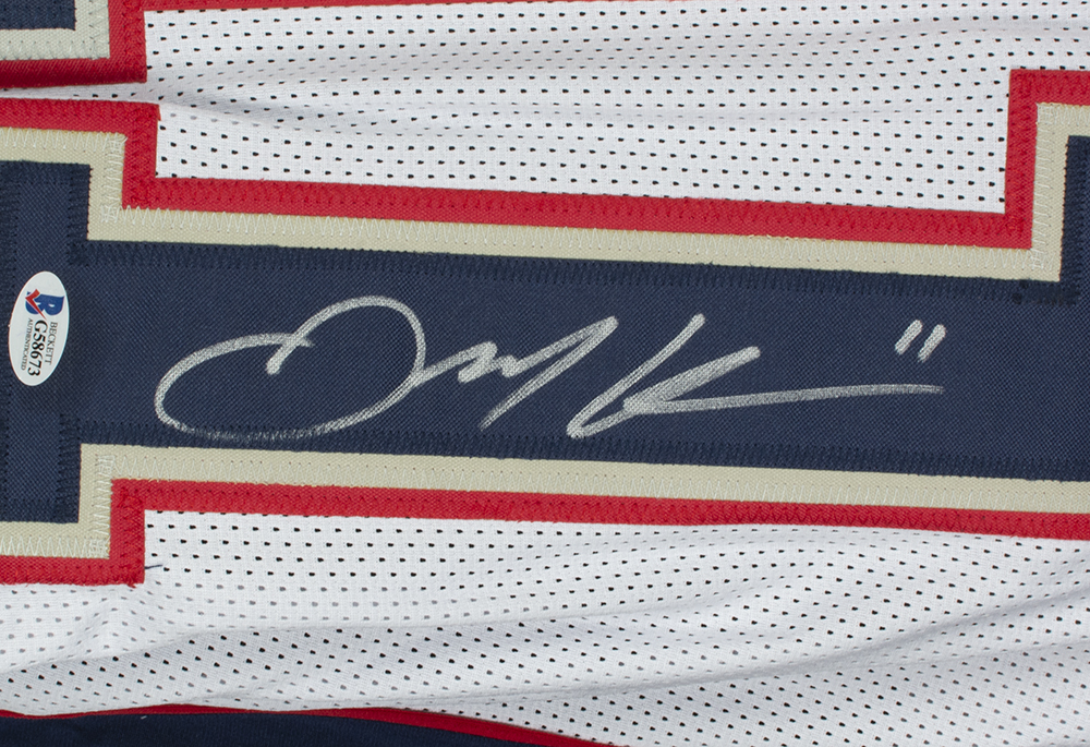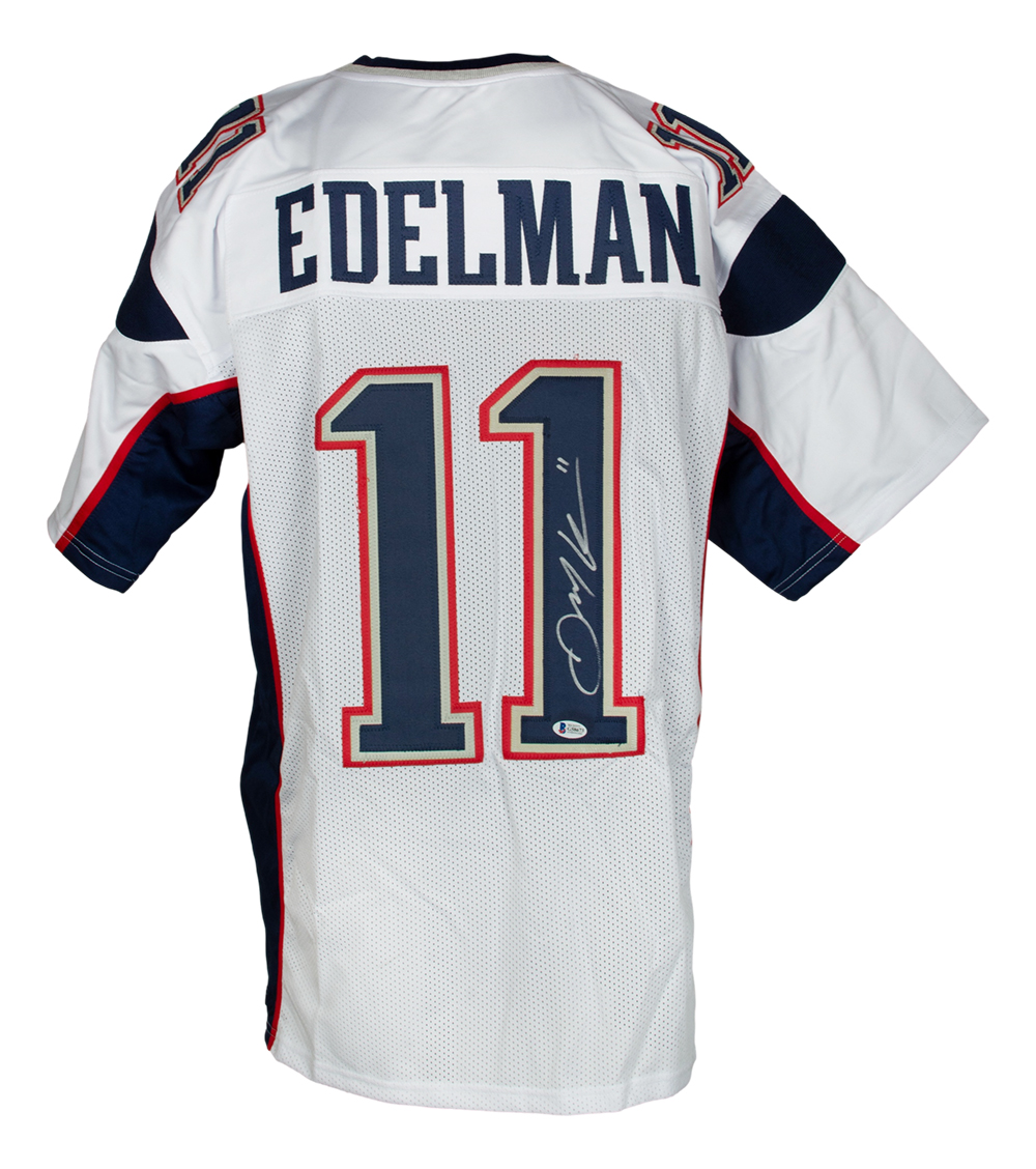 Custom on-field style jersey. Everything is sewn on, size XL. Hand-signed by Julian Edelman.