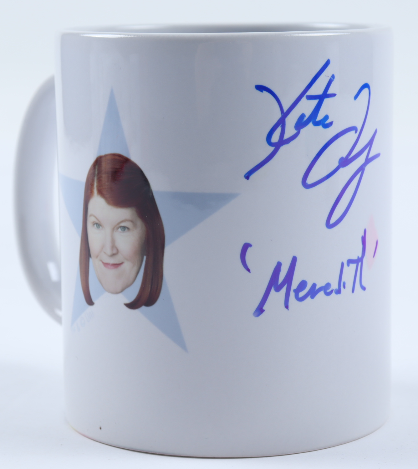 Mug measures approximately 4" in height. Hand-signed and inscribed by Kate Flannery (Meredith Palmer).