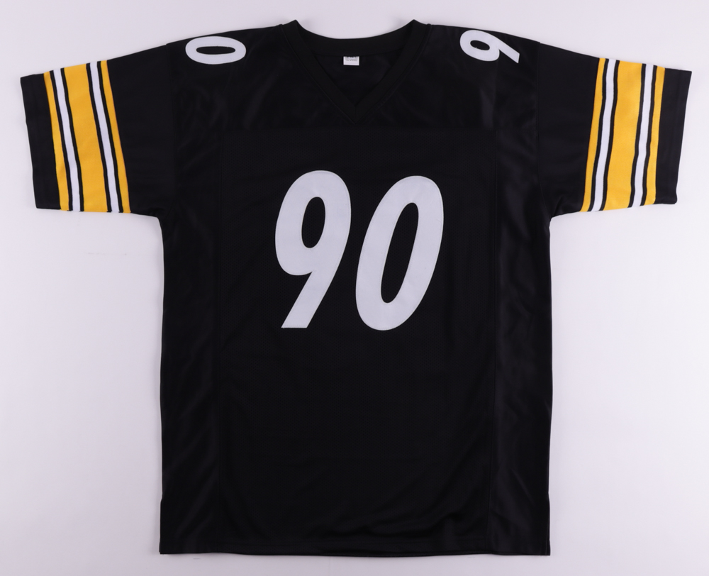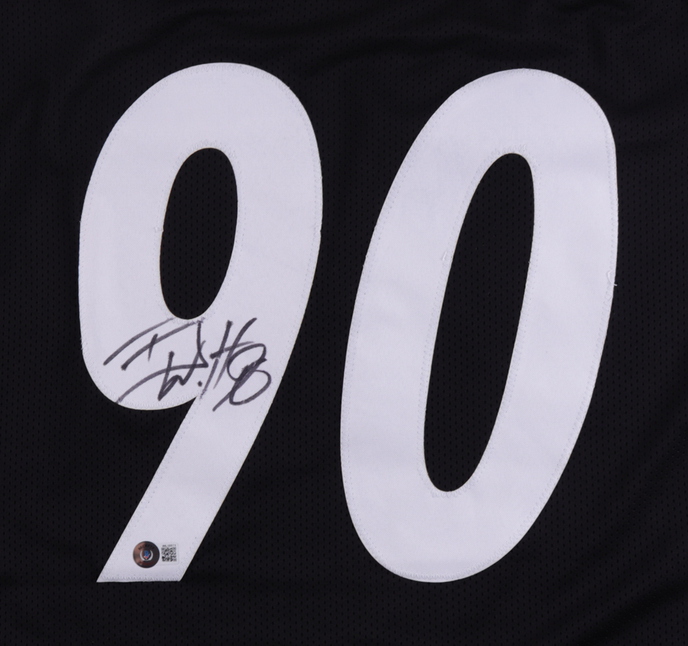 Custom on-field style jersey. Everything is sewn on, size XL. Hand-signed by T. J. Watt.
