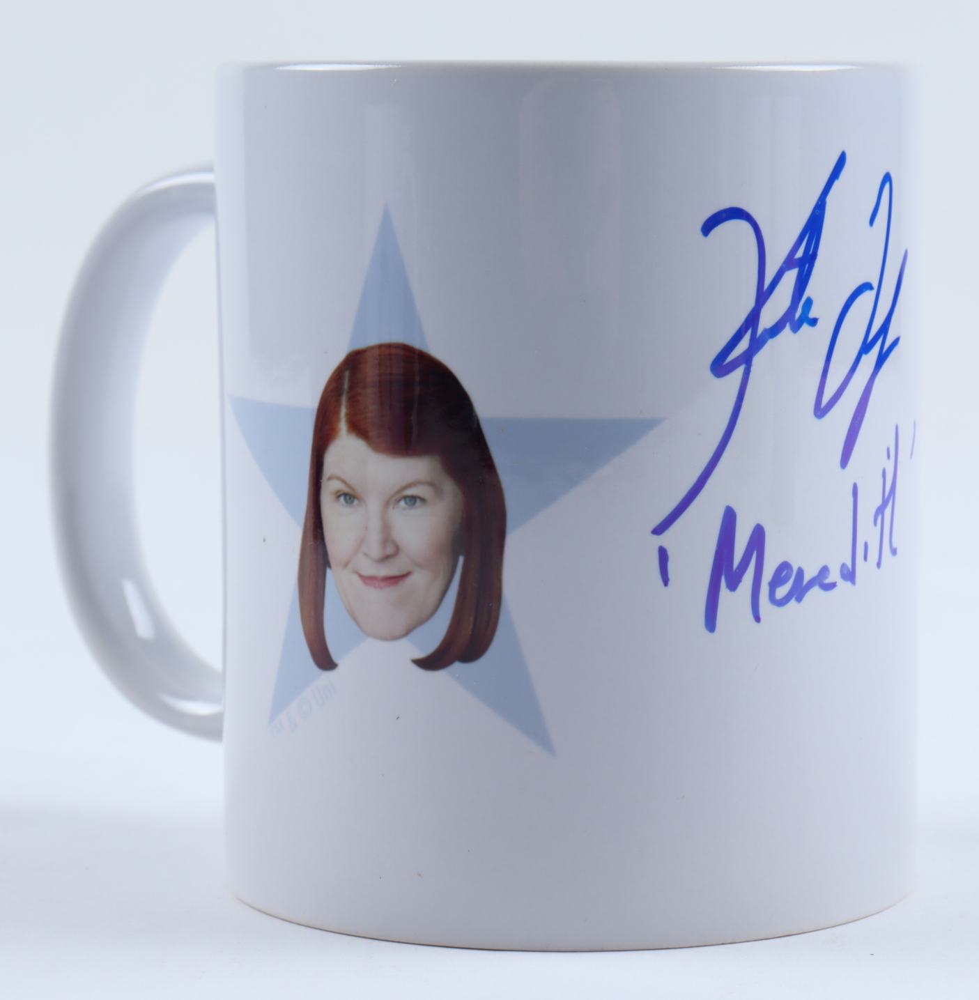 Mug measures approximately 4" in height. Hand-signed and inscribed by Kate Flannery (Meredith Palmer).