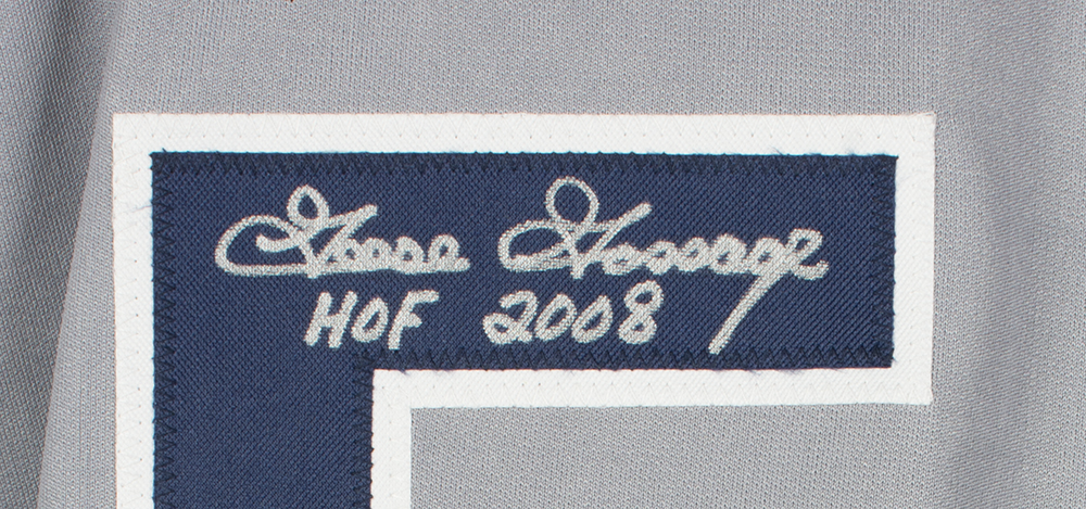 Custom on-field style jersey. Everything is sewn on, size XL. Hand-signed and inscribed by Goose Gossage (HOF).