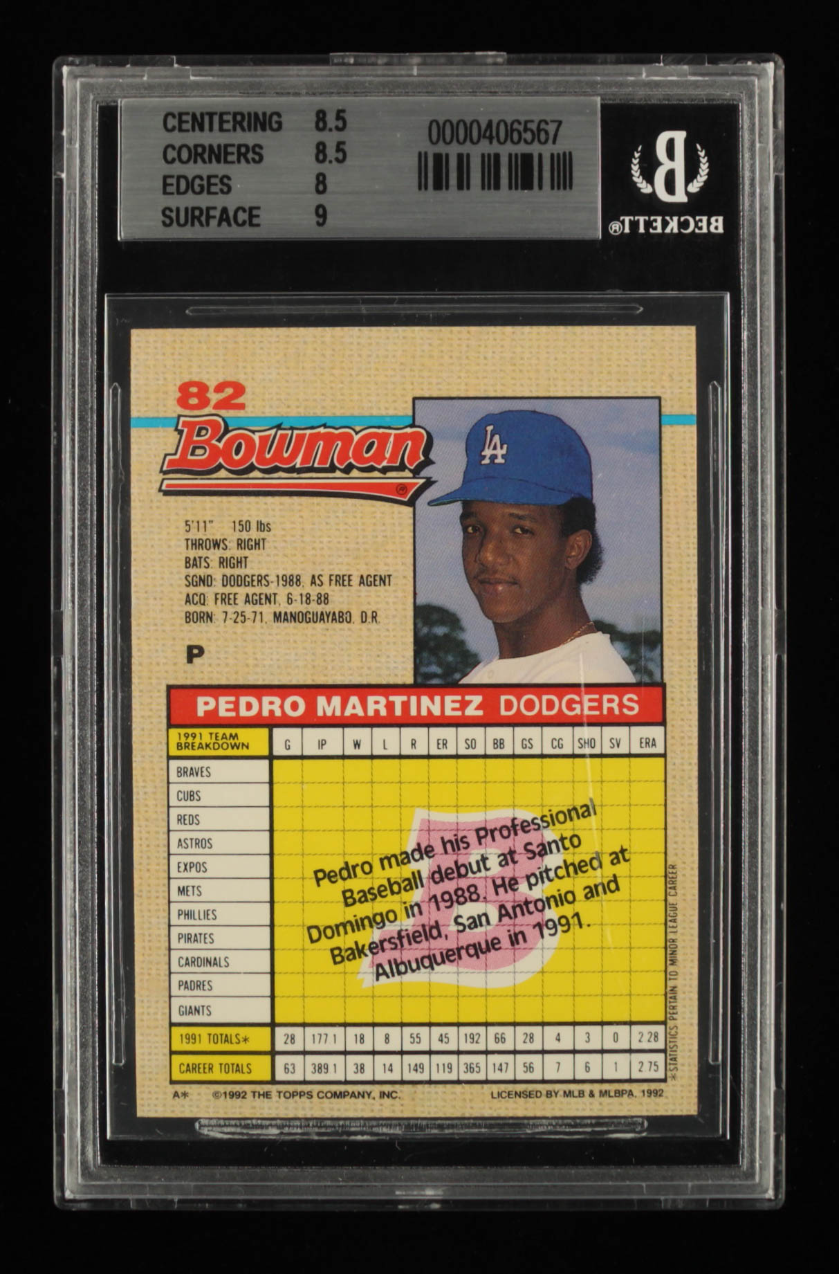 Pedro Martinez 1992 Bowman #82 (BGS 8.5)