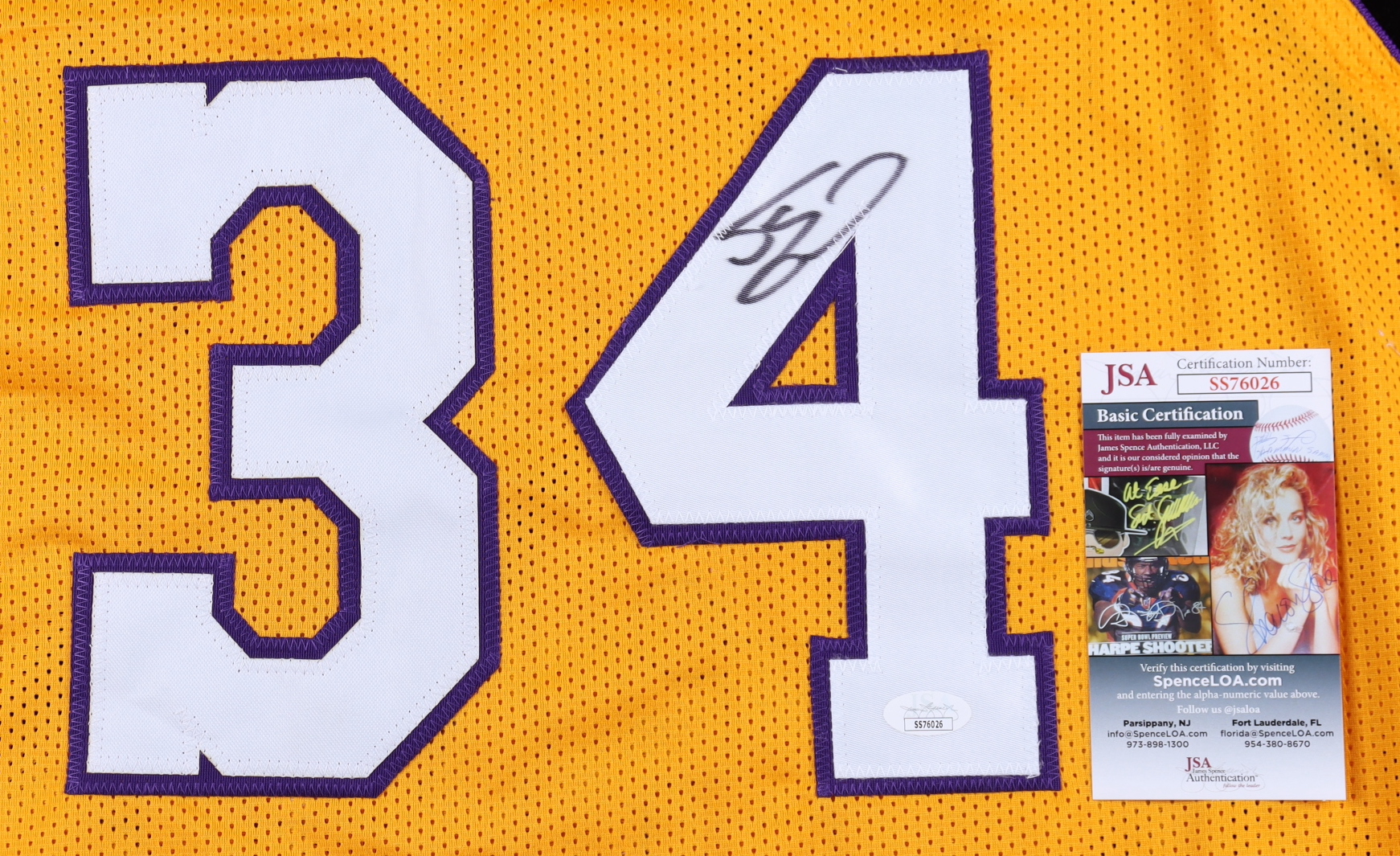 Custom on-court style jersey. Everything is sewn on, size XL. Hand-signed by Shaquille O'Neal (HOF).
