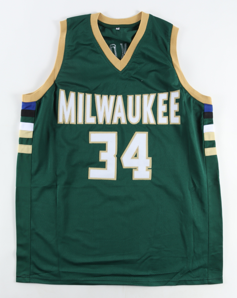 Custom on-court style jersey. Everything is sewn on, size XL. Hand-signed by Giannis Antetokounmpo.