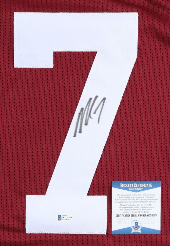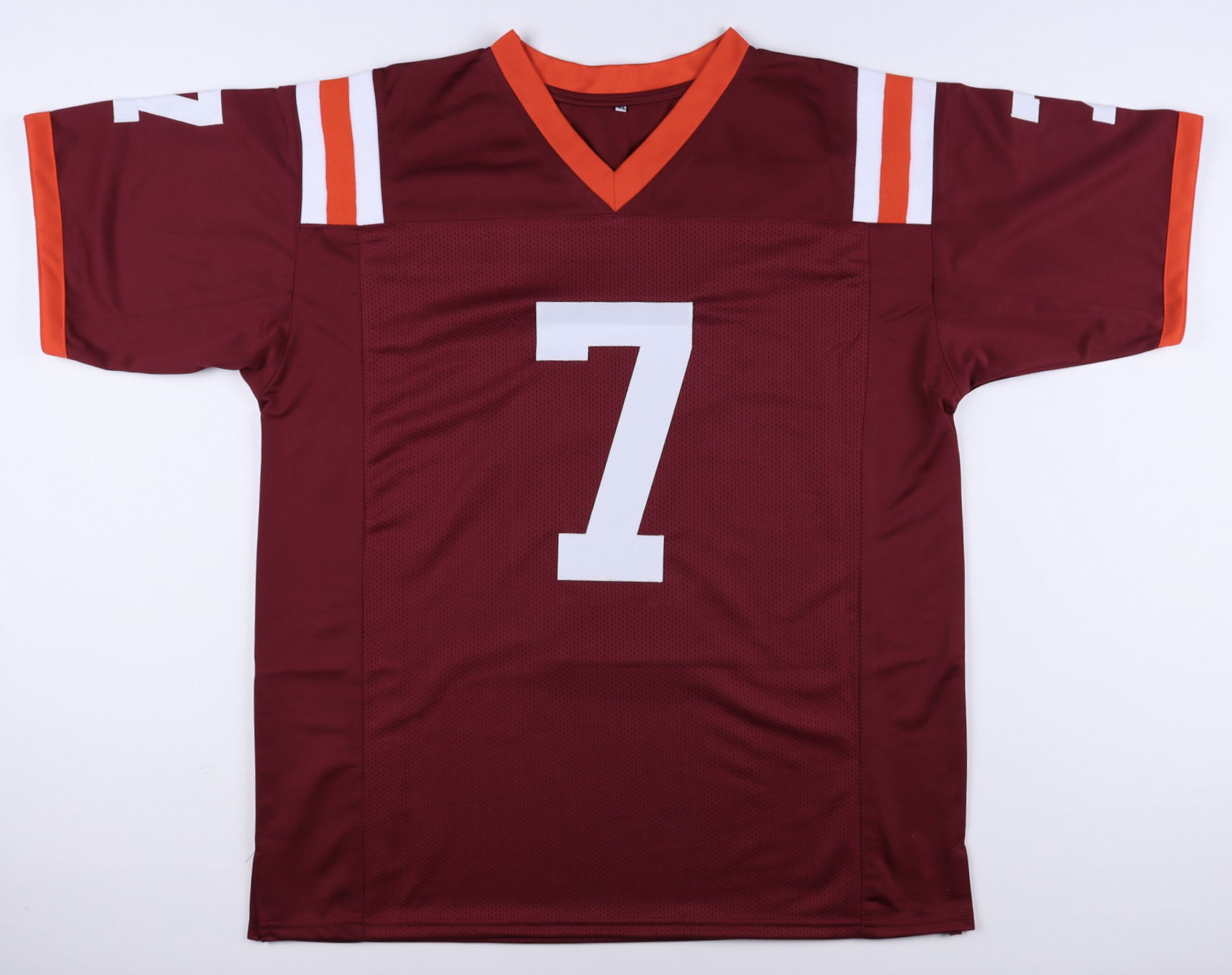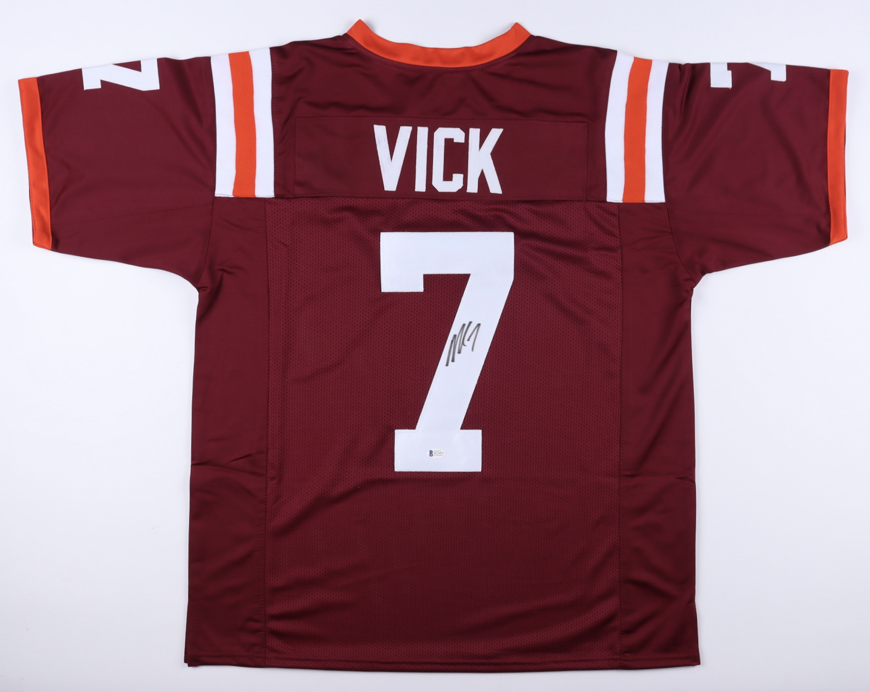 Custom on-field style jersey. Everything is sewn on, size XL. Hand-signed by Michael Vick.