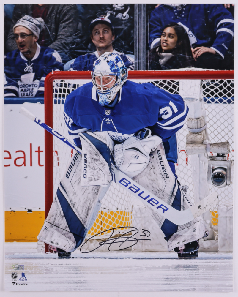 Photo measures 16" x 20" in size and has been hand signed by Frederik Andersen (Toronto Maple Leafs).