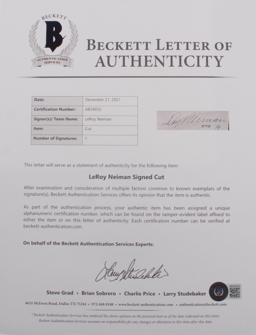 The lot / autograph(s) includes an official Beckett Authentication Services hologram and matching LOA for authenticity purposes.