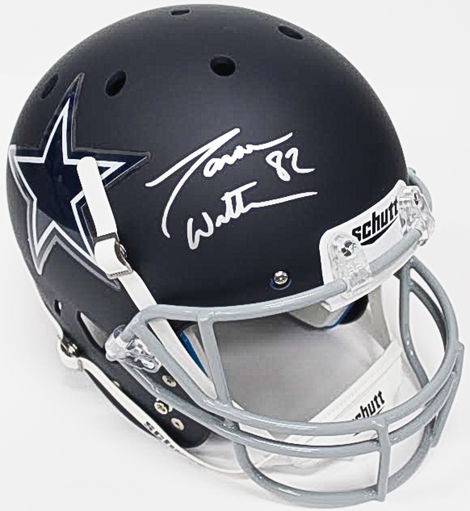 Schutt custom flat matte navy full-size replica helmet. Hand-signed in silver paint pen by Jason Witten. The helmet is a Pristine Auction exclusive item.
