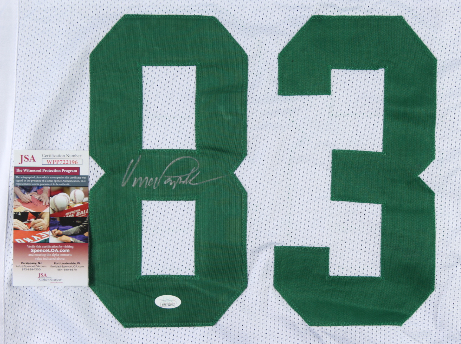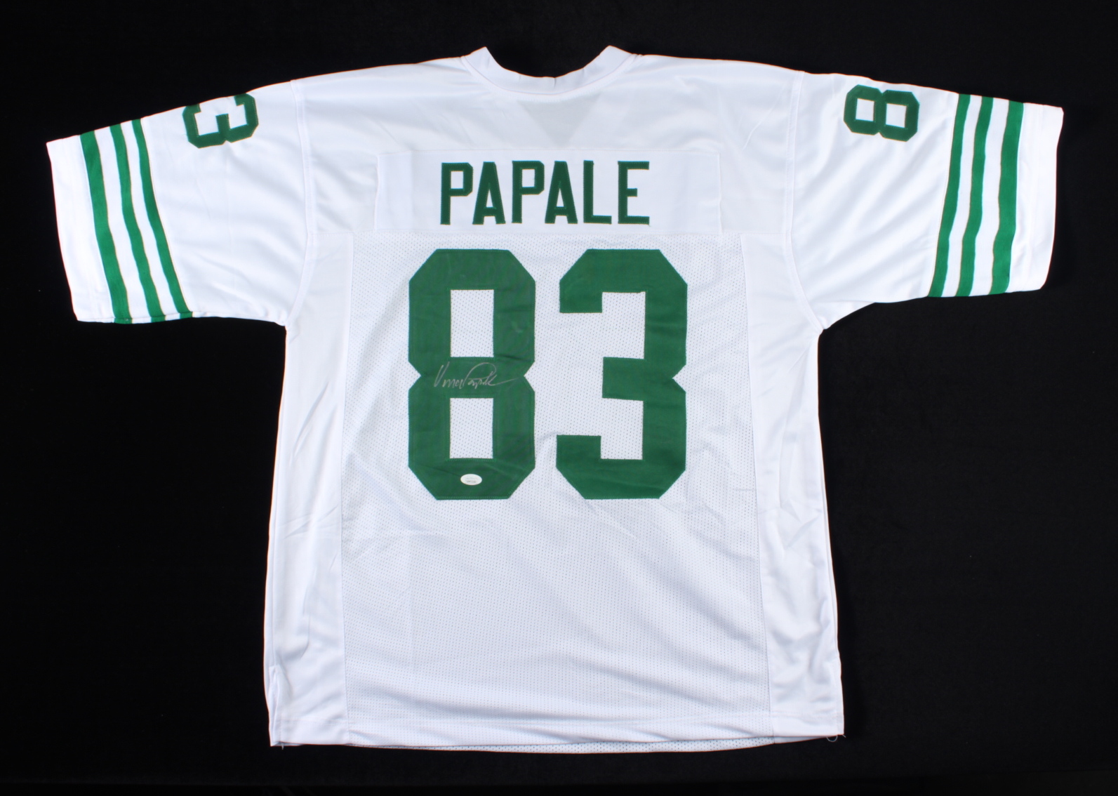 Custom on-field style jersey. Everything is sewn on, size XL. Hand-signed by Vince Papale.