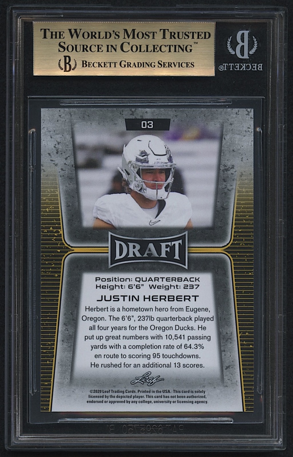 Justin Herbert 2020 Leaf Draft #3 RC (BGS 9.5)