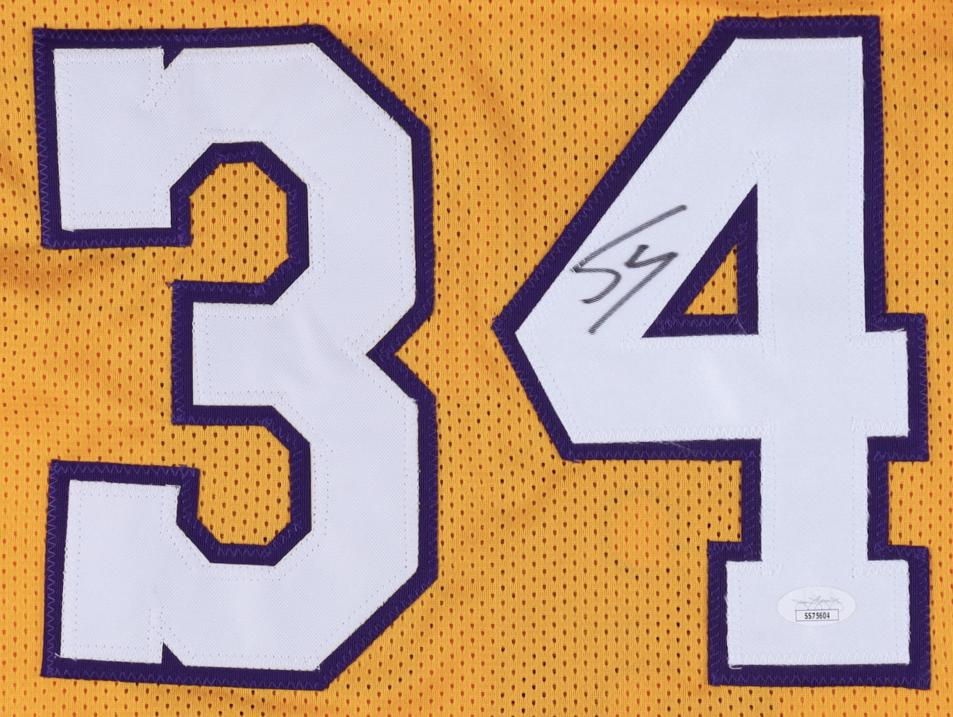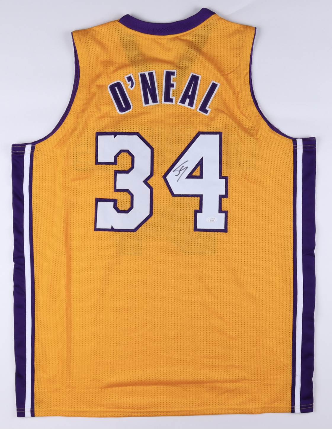 Custom on-court style jersey. Everything is sewn on, size XL. Hand-signed by Shaquille O'Neal (HOF). Please note, there is a stain on the back collar.