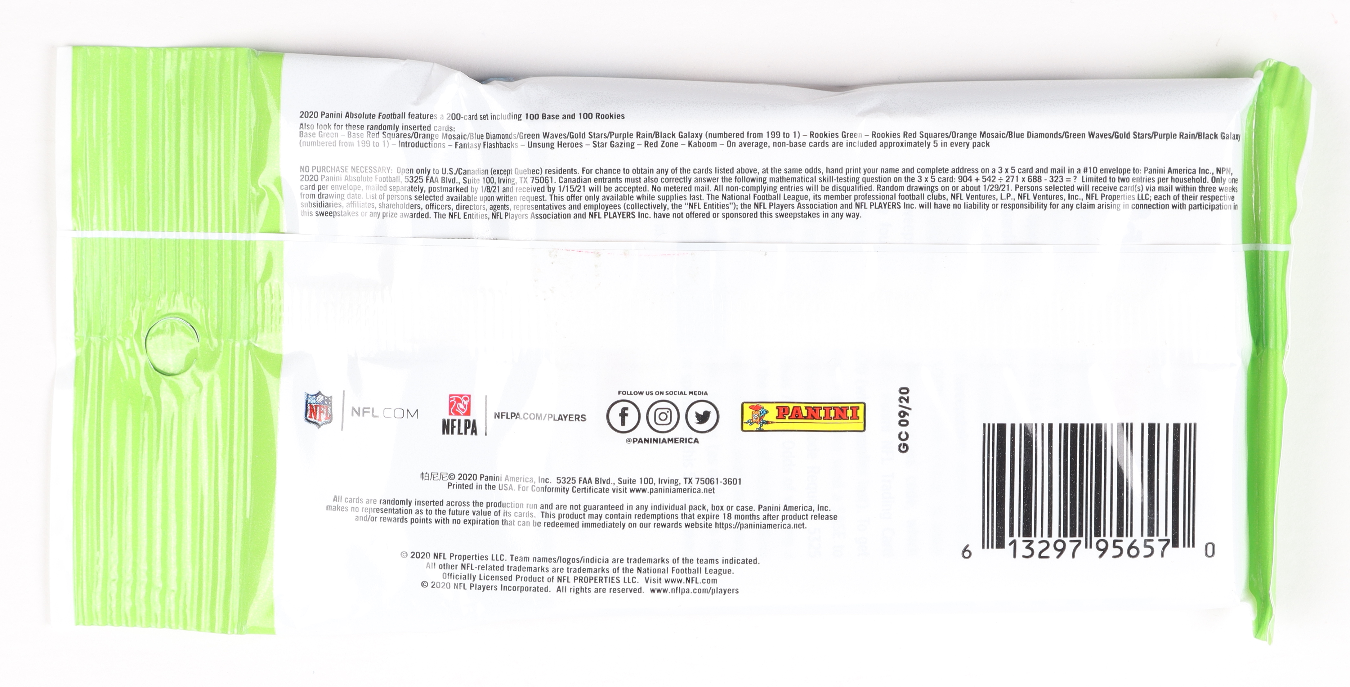 2020 Panini Absolute Football Fat Pack with (20) Cards