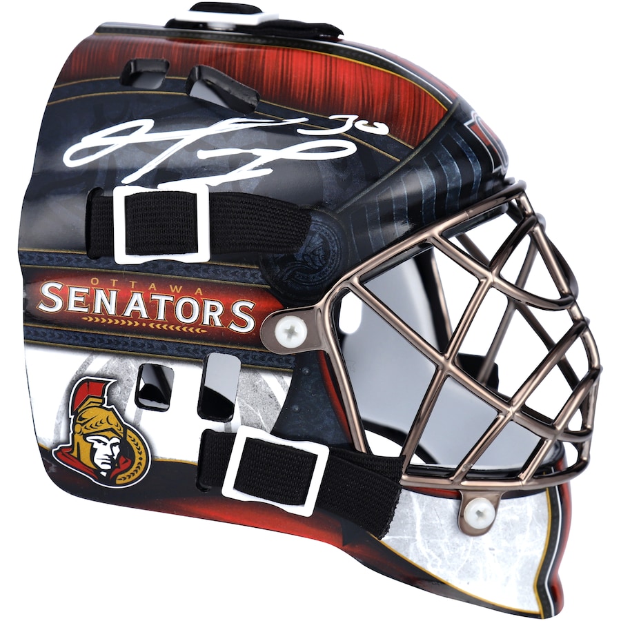 Ottawa Senators hockey mini goalie mask. Hand-signed by Matt Murray.