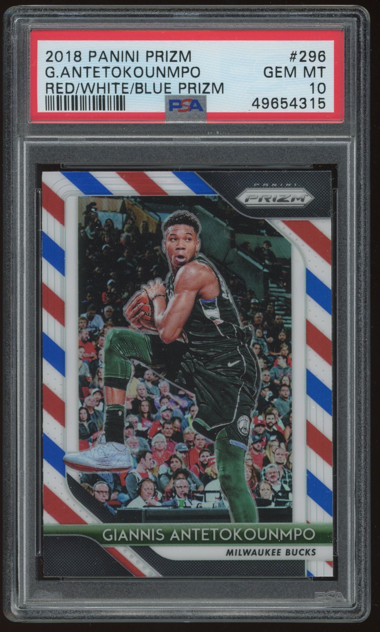 - GIANNIS ANTETOKOUNMPO 2018 Prizm RWB #296 PSA 10