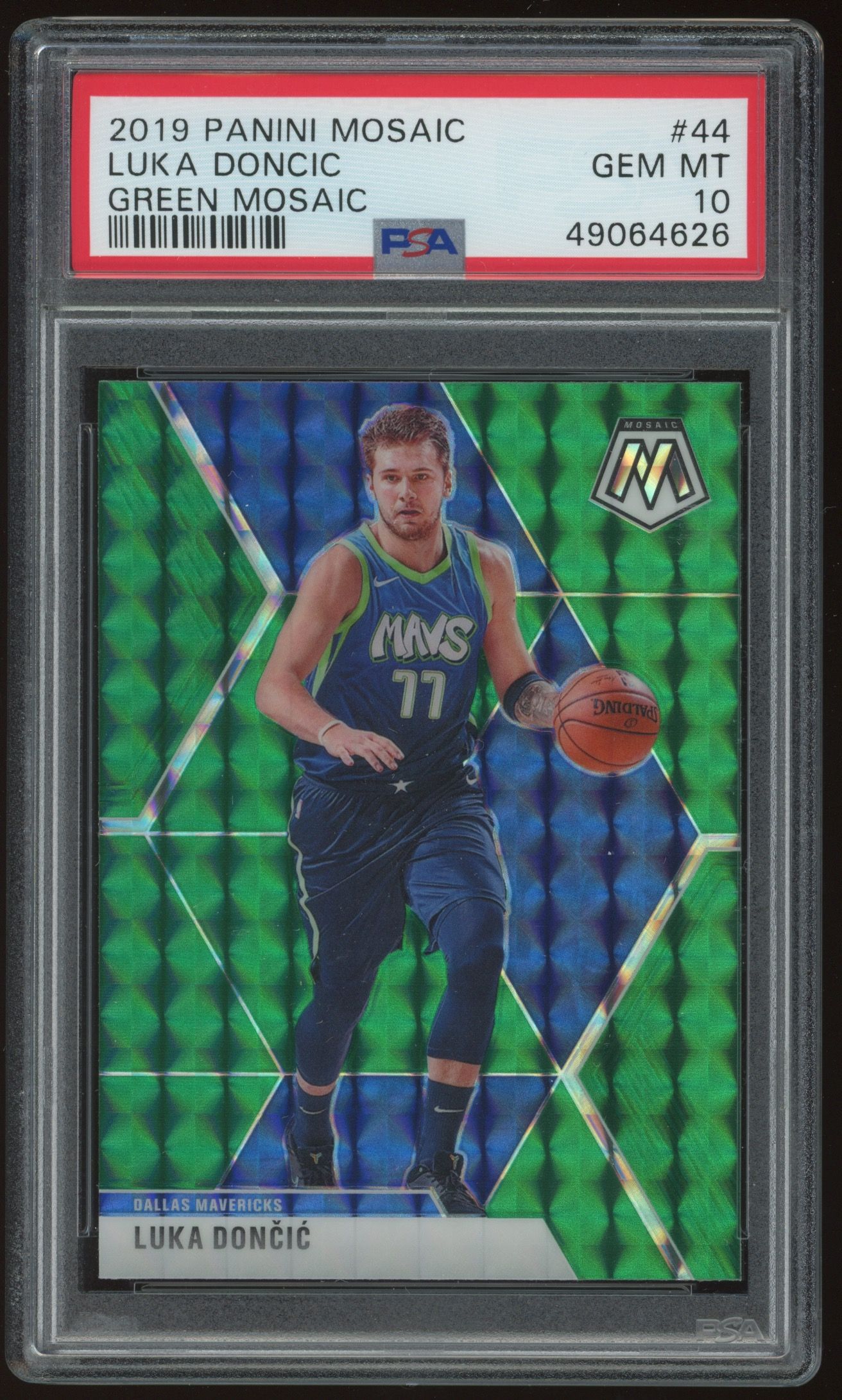 - LUKA DONIC 2019 Mosaic Green Prizm #44 PSA 10