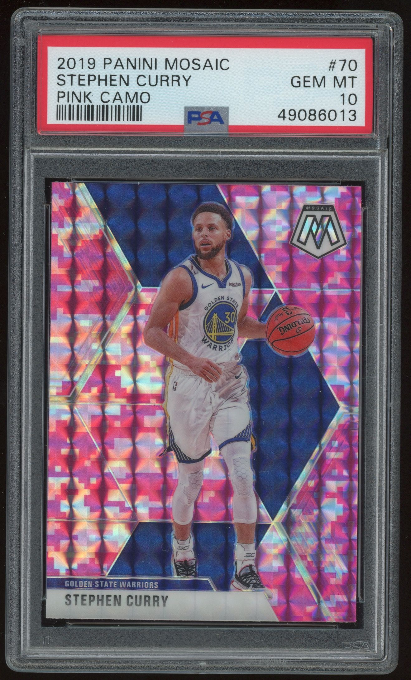 - STEPHEN CURRY 2019 Mosaic Pink Camo #70 PSA 10