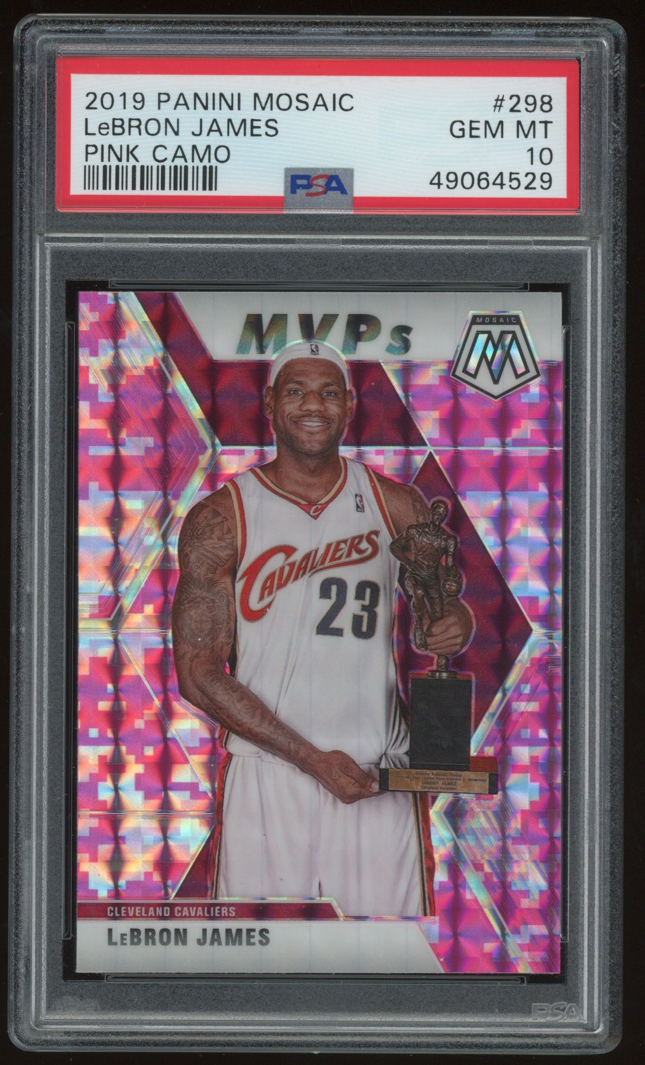 - LEBRON JAMES 2019 Mosaic MVPs Pink Camo #298 PSA 10