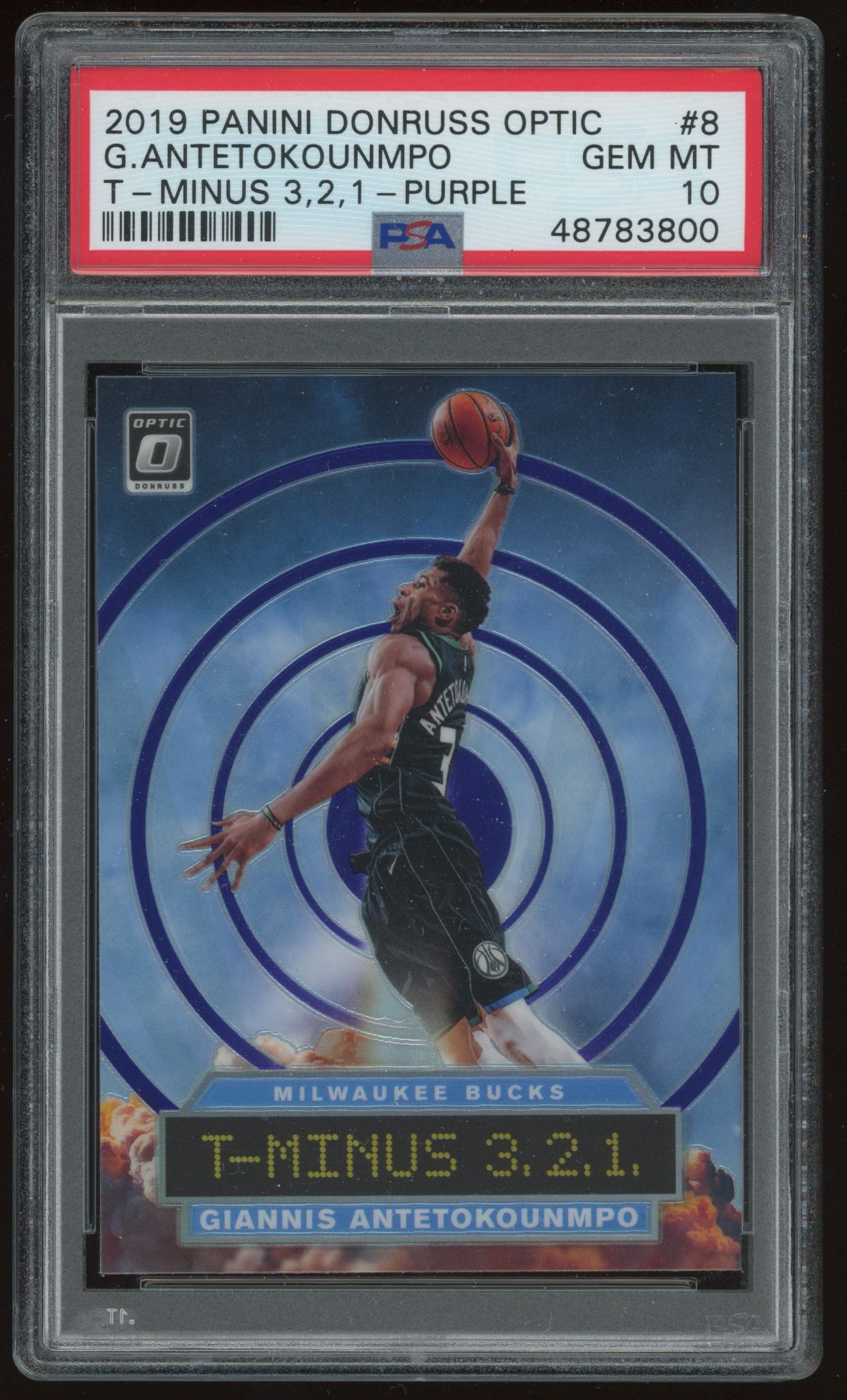 - GIANNIS ANTETOKOUNMPO 2019 Optic T-Minus 321 Purple #8 PSA 10