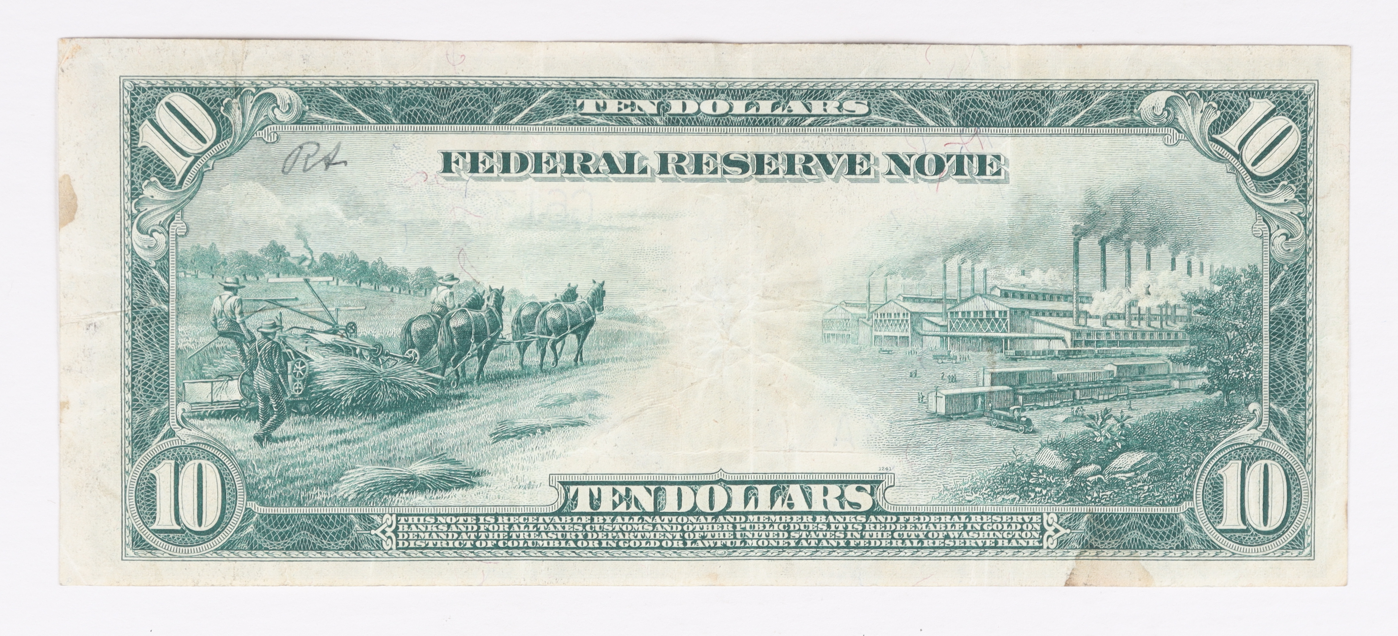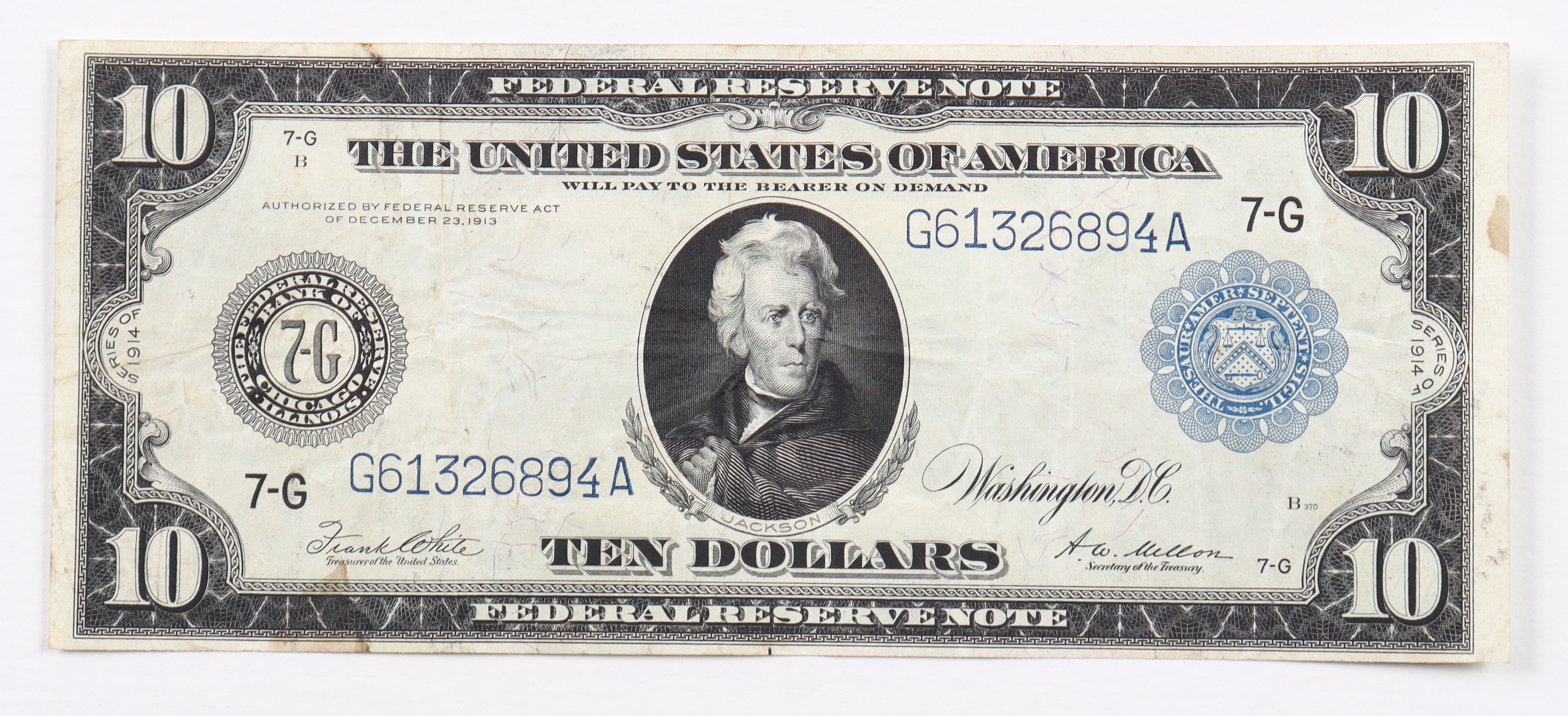1913 $10 Ten Dollar U.S. Federal Reserve Note