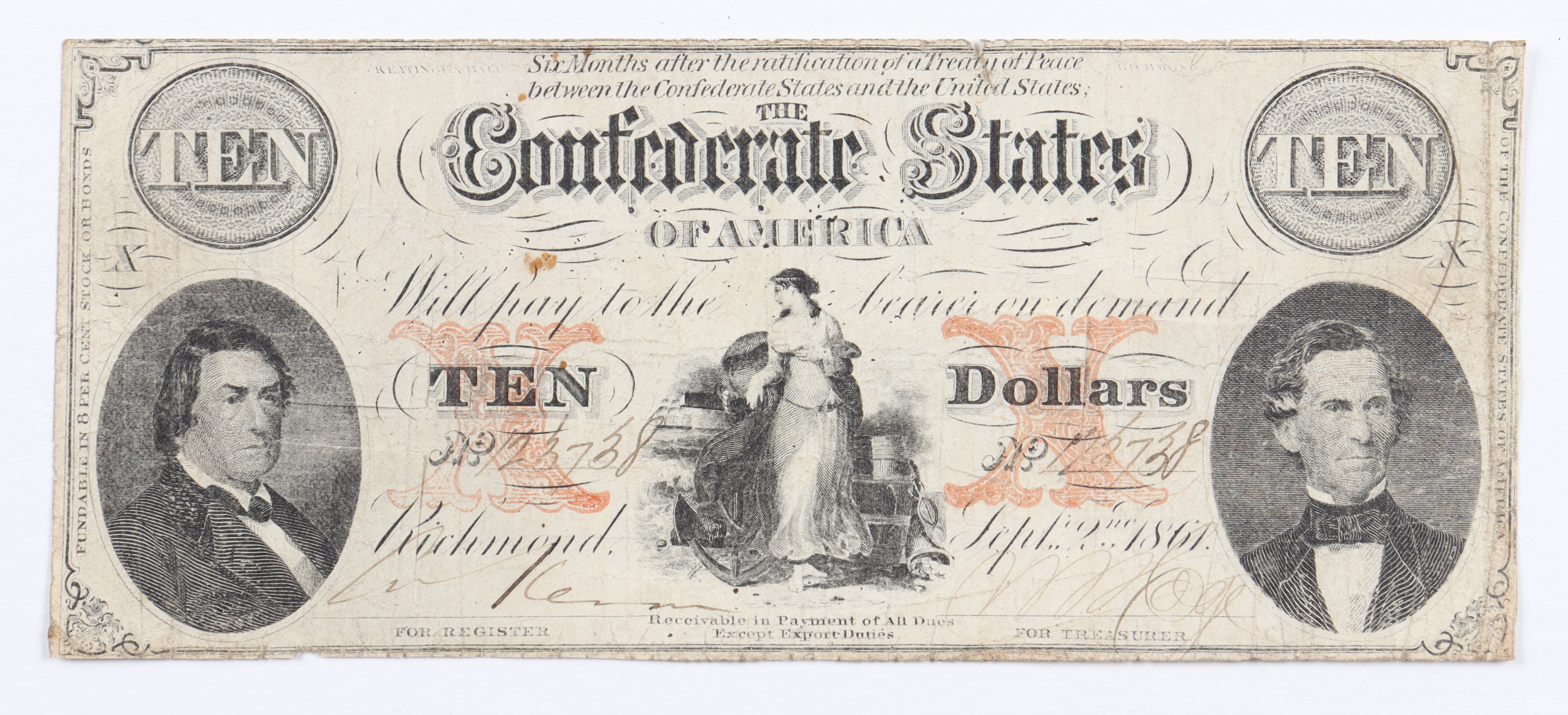 1861 $10 Ten Dollar Confederate States of America Currency Note