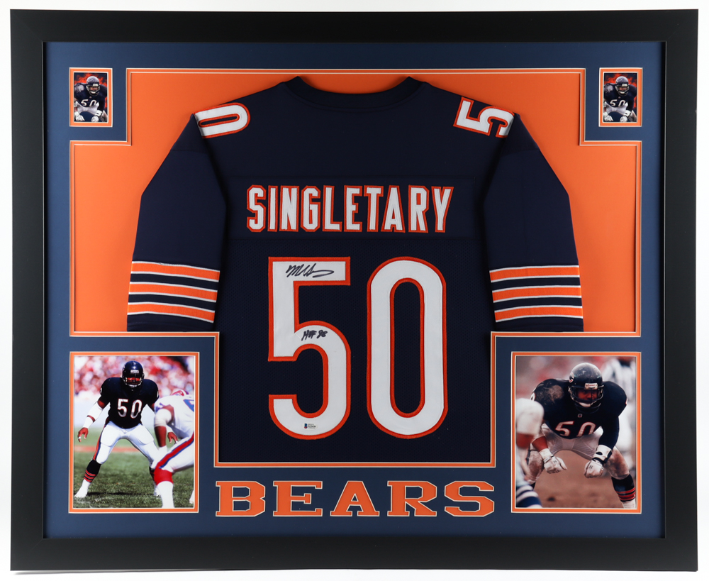 Custom frame measures 35" x 43" in size and features a jersey hand-signed and inscribed by Mike Singletary (HOF).