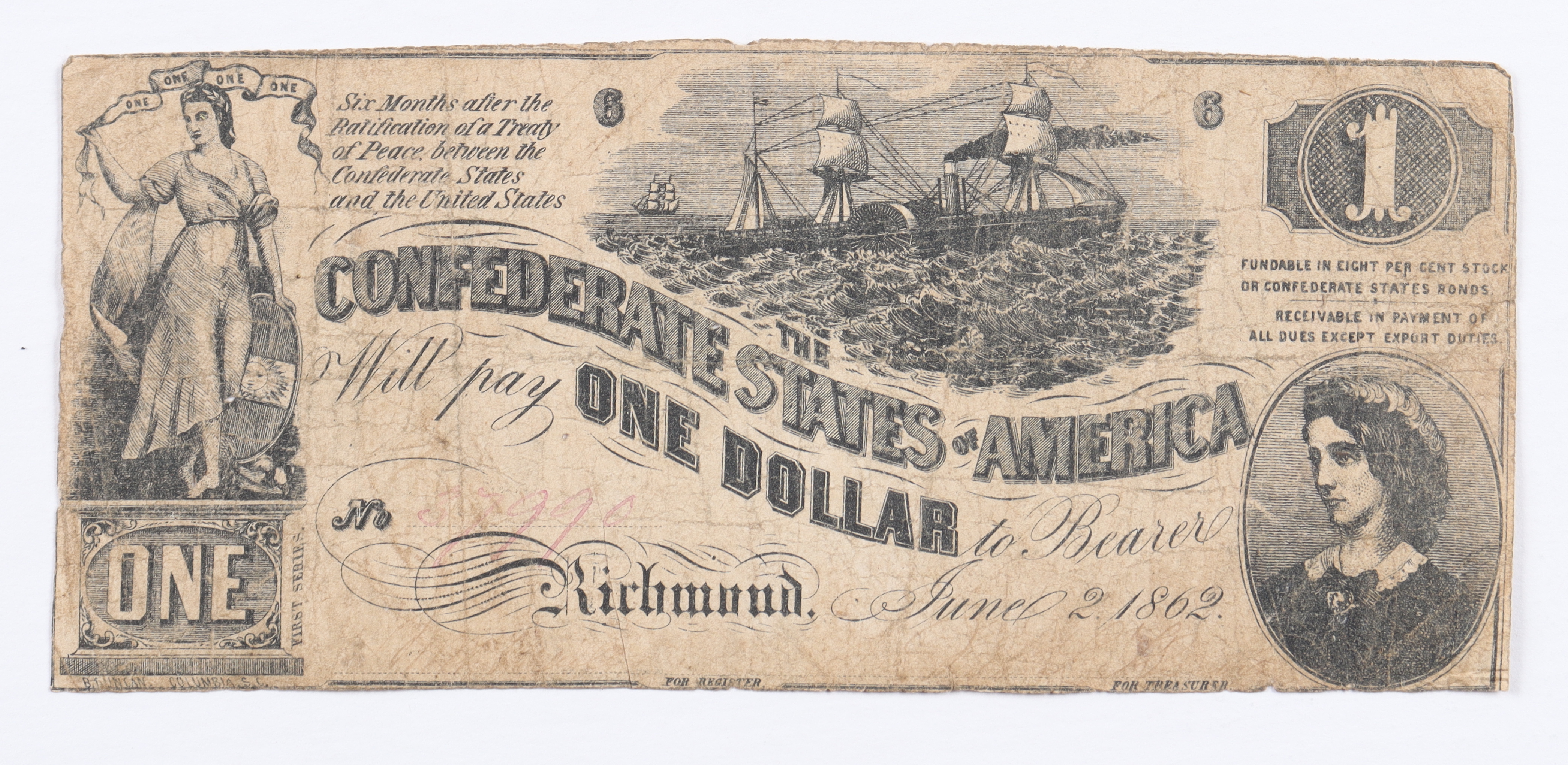 1862 $1 One Dollar Confederate States of America Currency Note