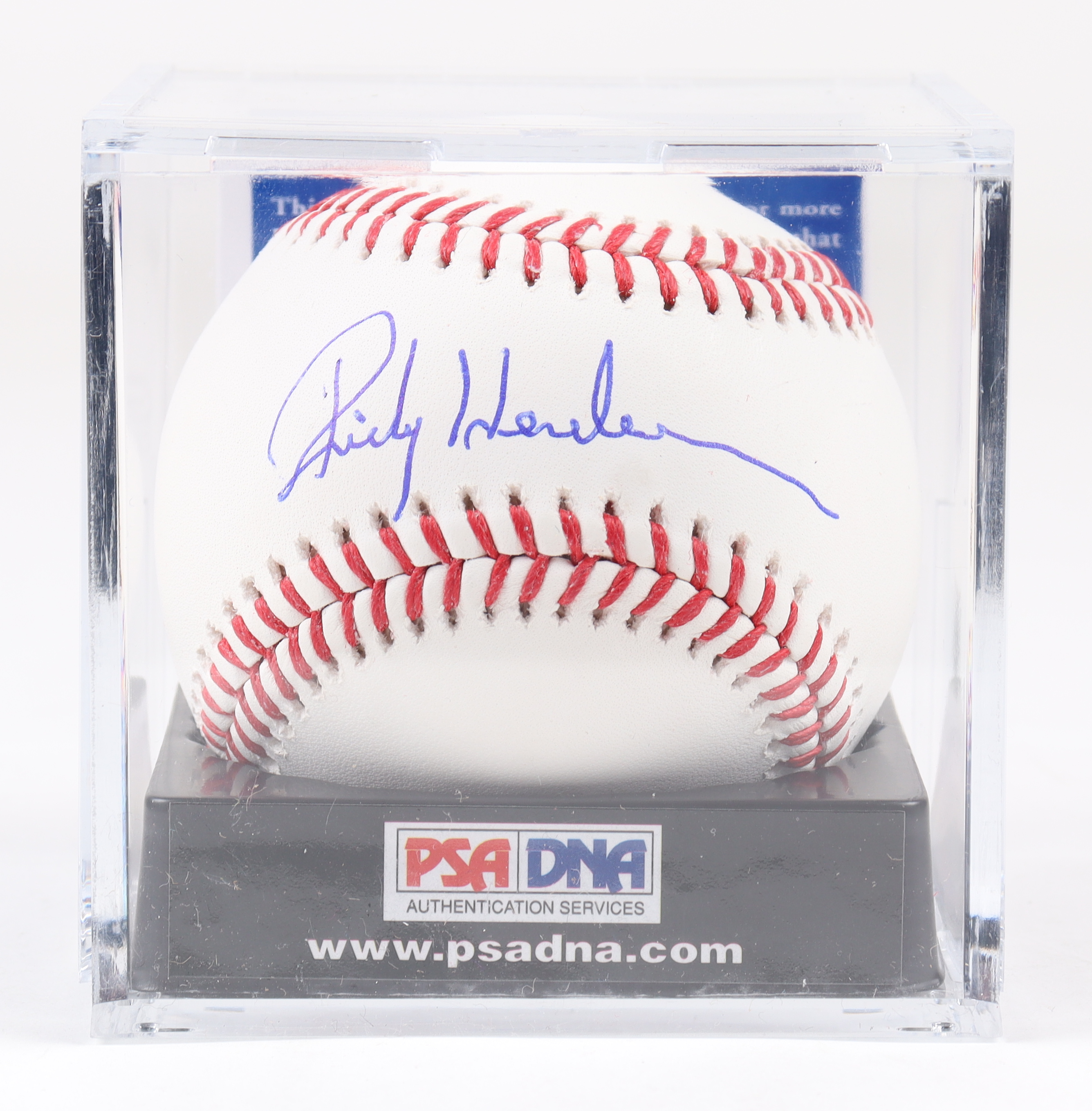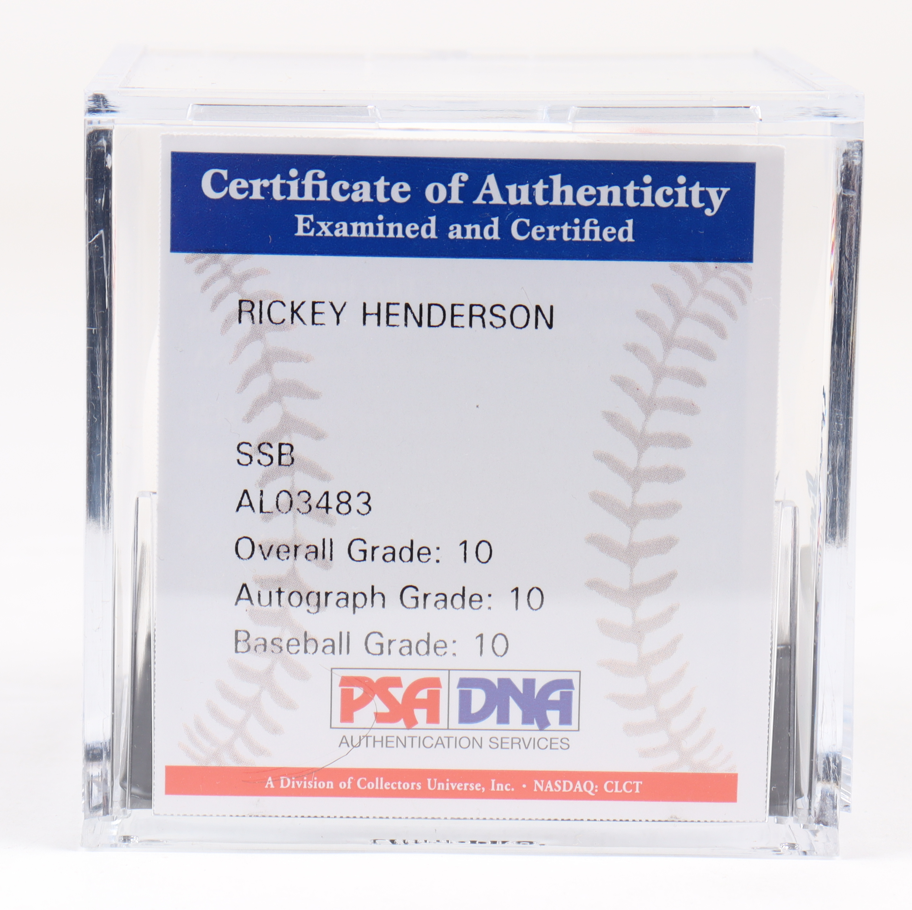 Rickey Henderson Signed OML Baseball with Display Case (PSA COA - Graded 10)