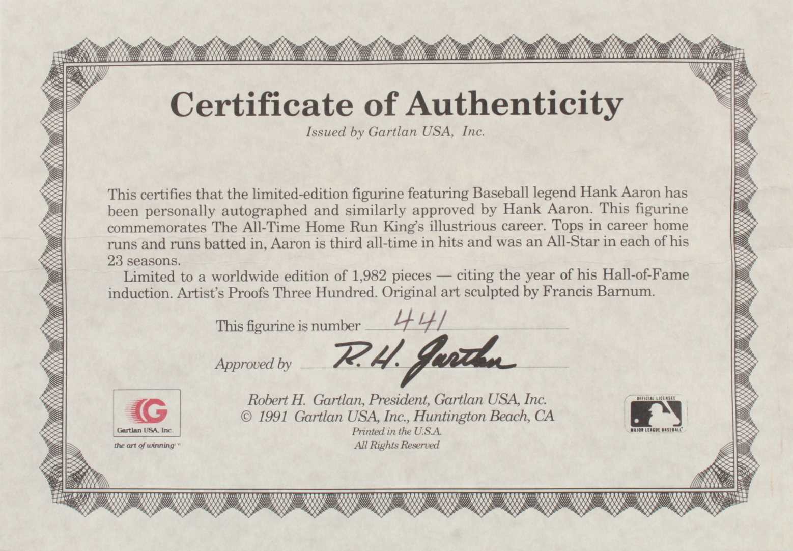 Limited Edition # 441 / 1,982