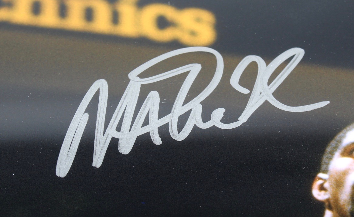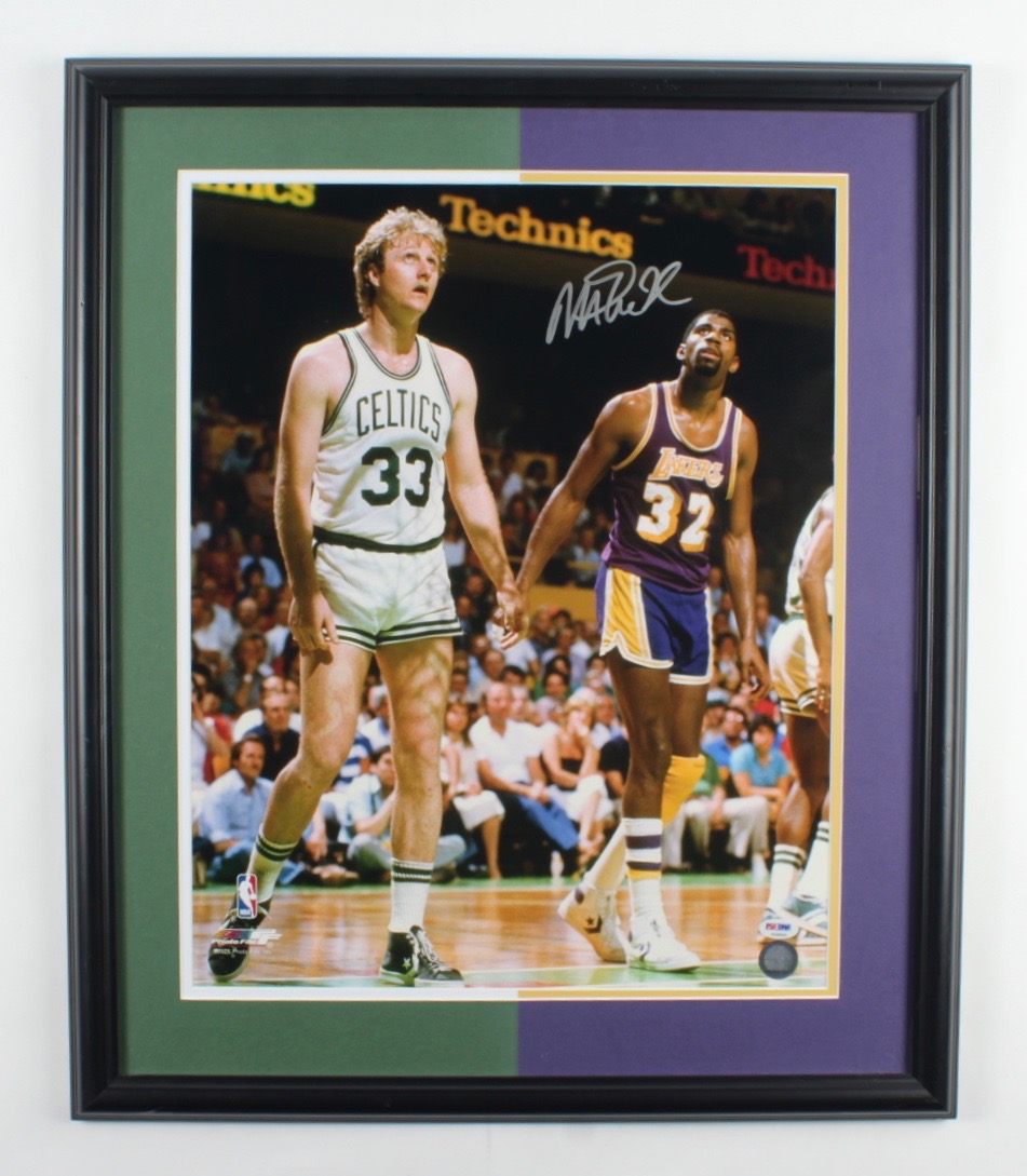 Custom frame measures approximately 22" x 26" in size and features a photo that has been hand-signed by Magic Johnson (Los Angeles Lakers, HOF).